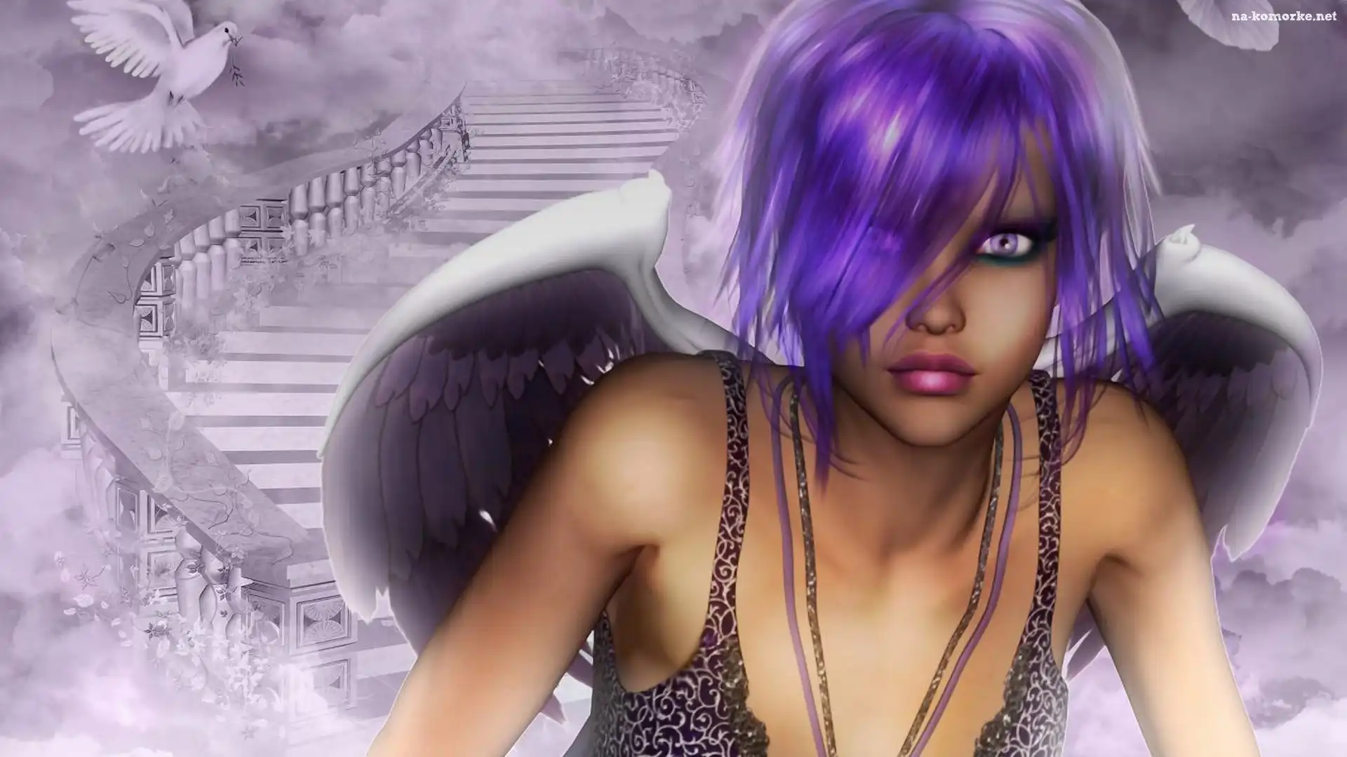 Anioł, Schody, Fioletowe, Włosy na Komórkę