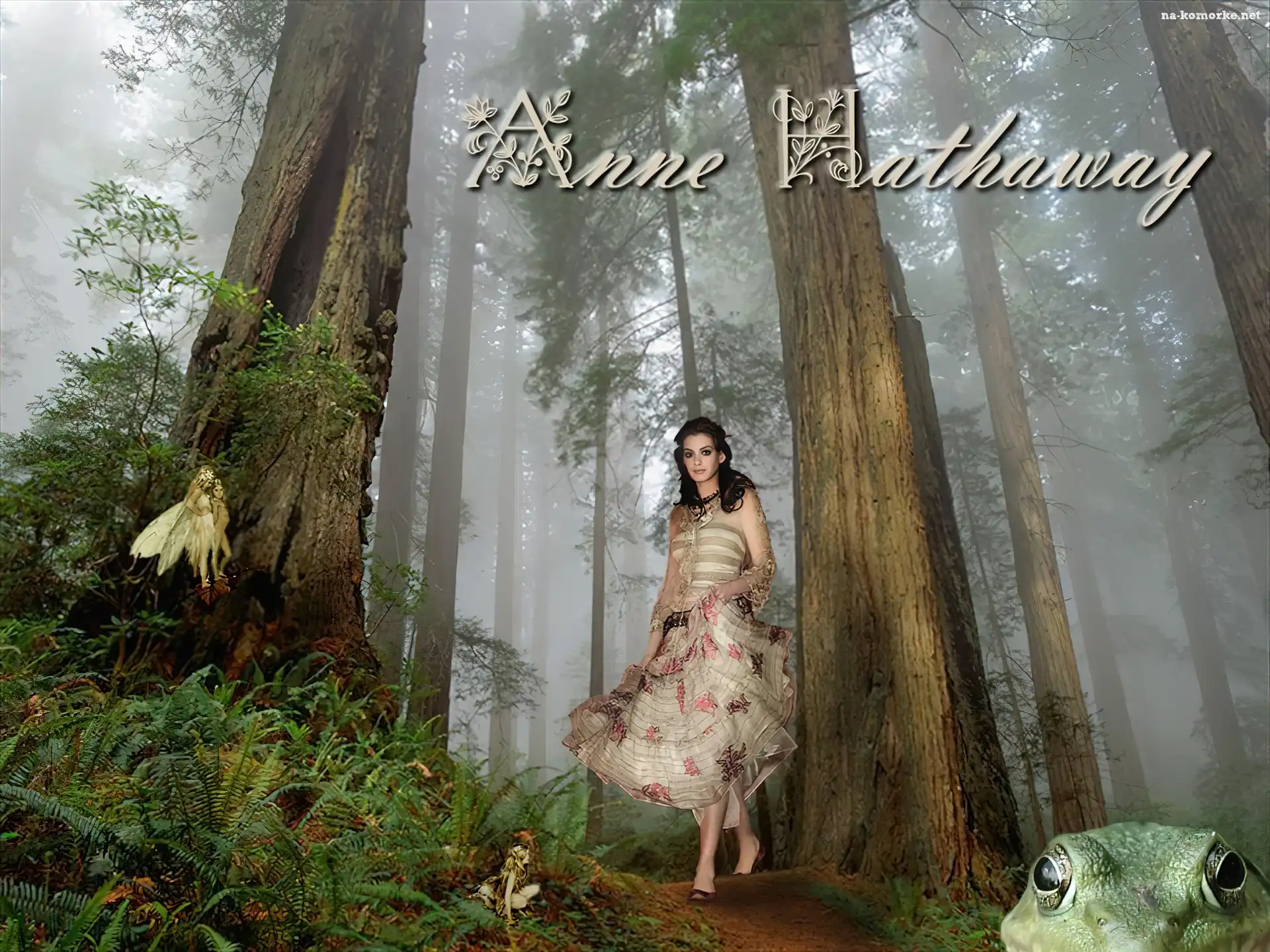 Kobieta, Anne Hathaway Anne Hathaway, Lustro, Niebieska, Sukienka Becoming Jane, James McAvoy, Anne Hathaway Anne Hathaway, biuro, Devil Wears Prada, Meryl Streep Anne Hathaway, Spojrzenie Anne Hathaway, Las, drzewa Anne Hathaway Anne Hathaway