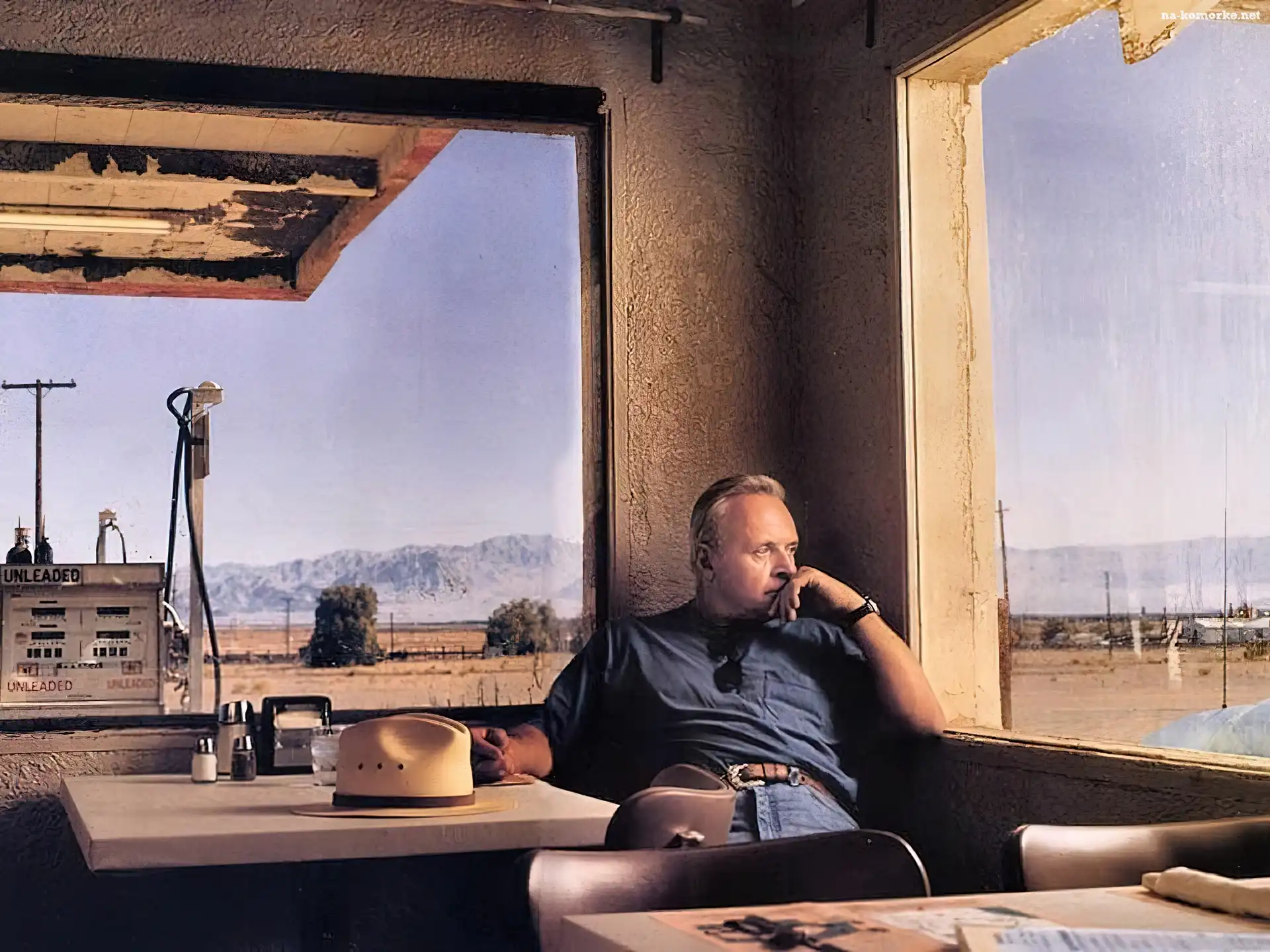 Anthony Hopkins, kapelusz, okulary na Komórkę
