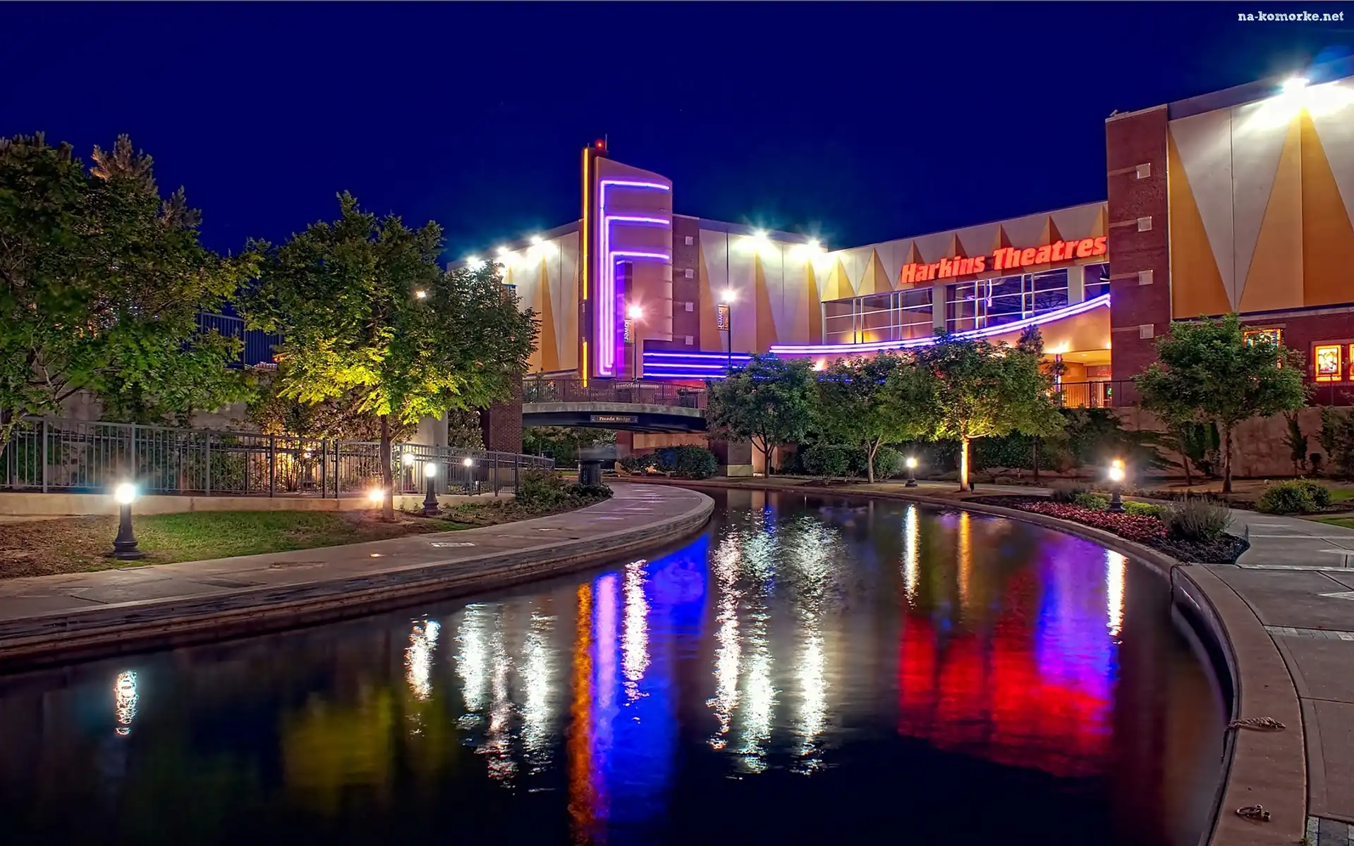 San Antonio, Rzeka, Drzewa, Miasto, Nocą, Gmach, Teatru na Komórkę