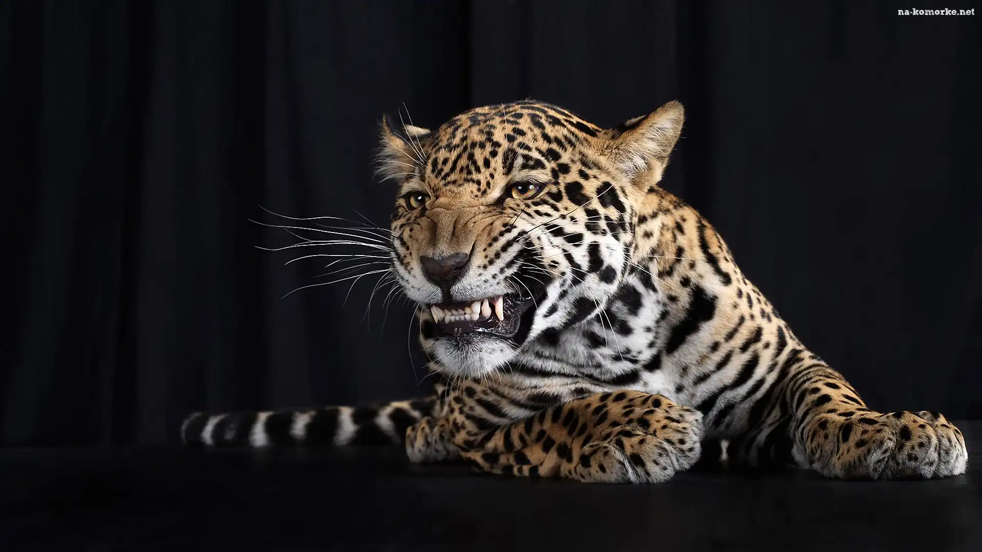 Lampart, Śnieg Lamparty Smutny, Liście, Lampart, Drzewo Serwal, Paszcza, Kły Lampart, Drzewo, Liście Lampart, Głaz Lampart Lampart, Pień, Drzewa Lamparcie, Cętki Lamapart, Łapy, Zęby Lampart, Kot Młody, Lampart Lampart, Szarość Lampart, Grafika