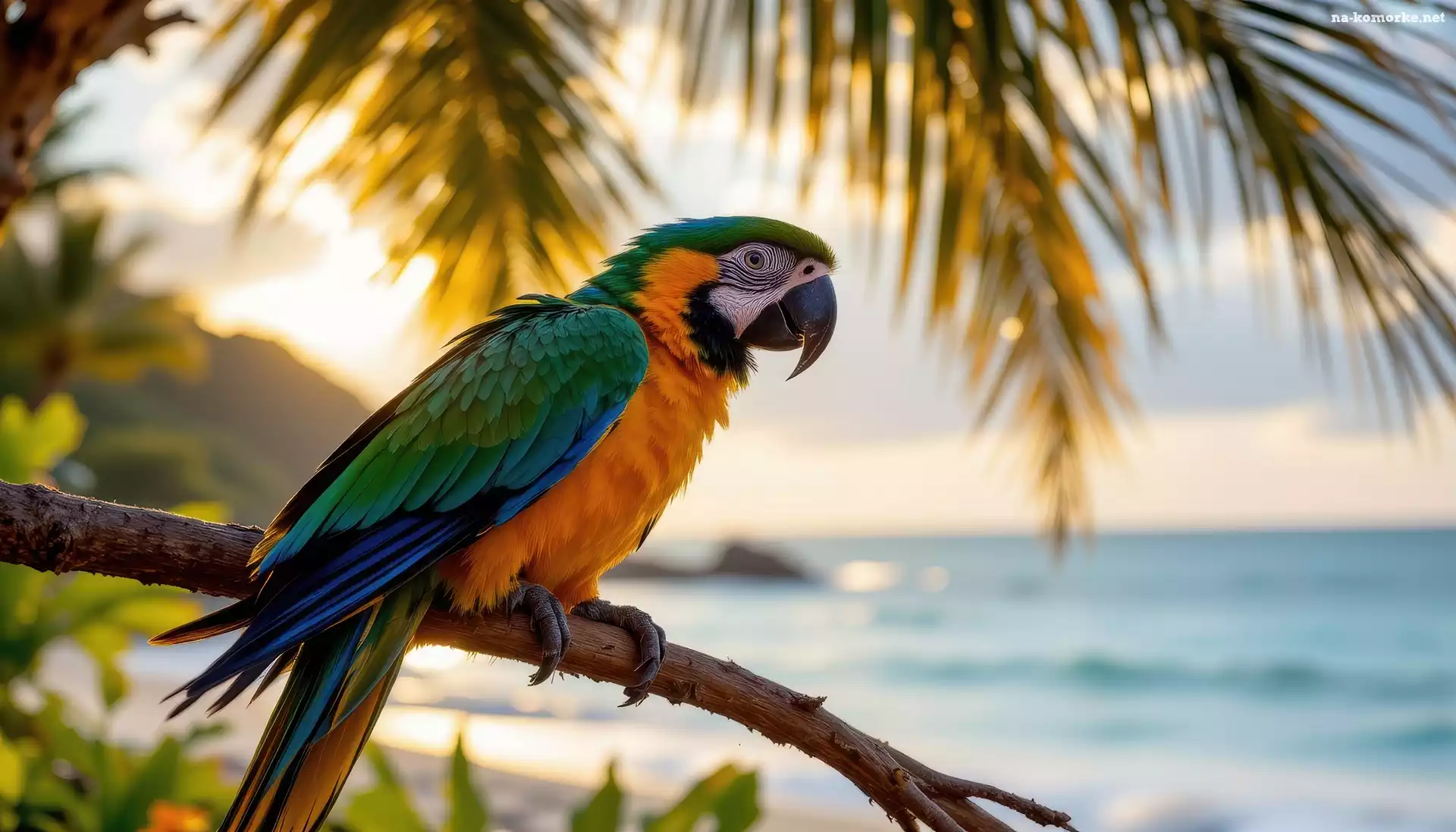Papuga, Gałąź, Morze, Ara, Grafika AI na Komórkę