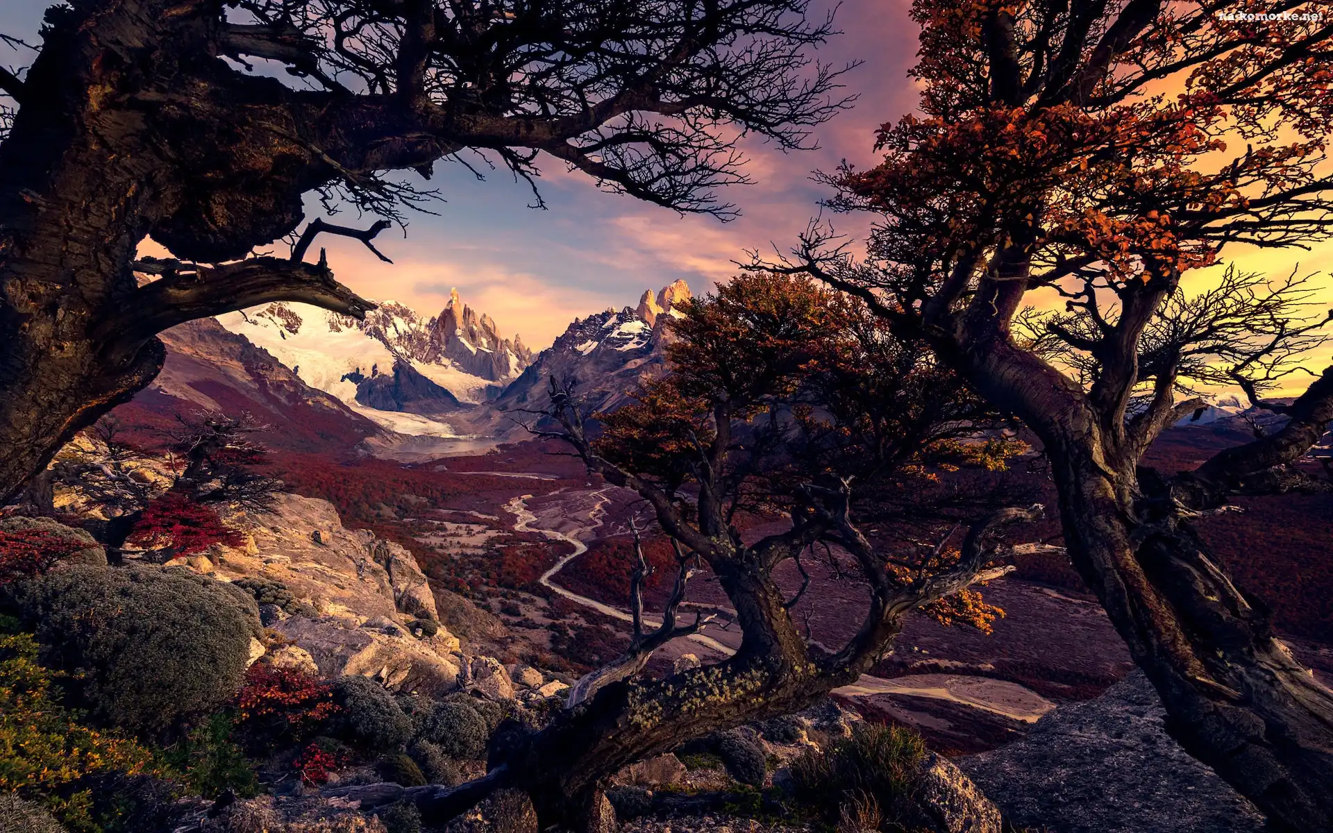 Góry, Droga, Park Narodowy Los Glaciares, Argentyna, Drzewa, Jesień, Andy, Patagonia na Komórkę