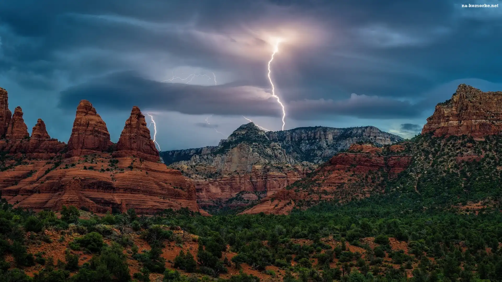 Krzewy, Burza, Stany Zjednoczone, Piorun, Sedona, Skały, Arizona na Komórkę