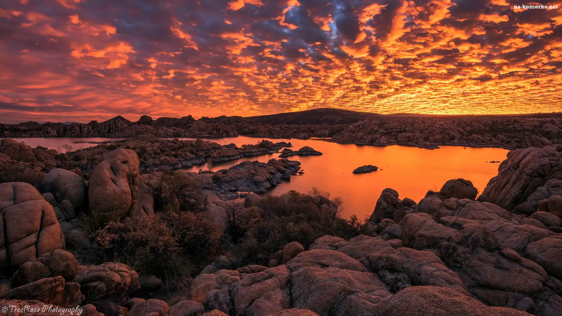 Wschód słońca, Arizona, Jezioro, Stany Zjednoczone, Chmury, Watson Lake, Skały, Prescott na Komórkę |