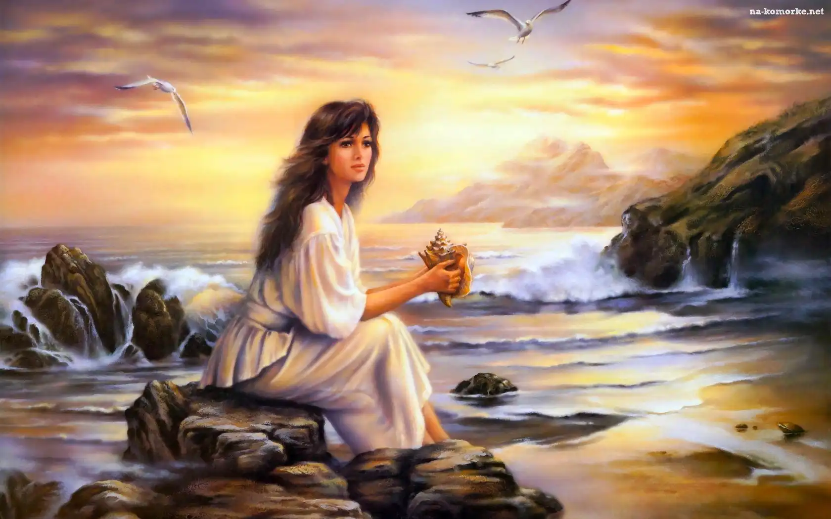 Art, Kobieta, Muszla, Morze, Kamienie na Komórkę