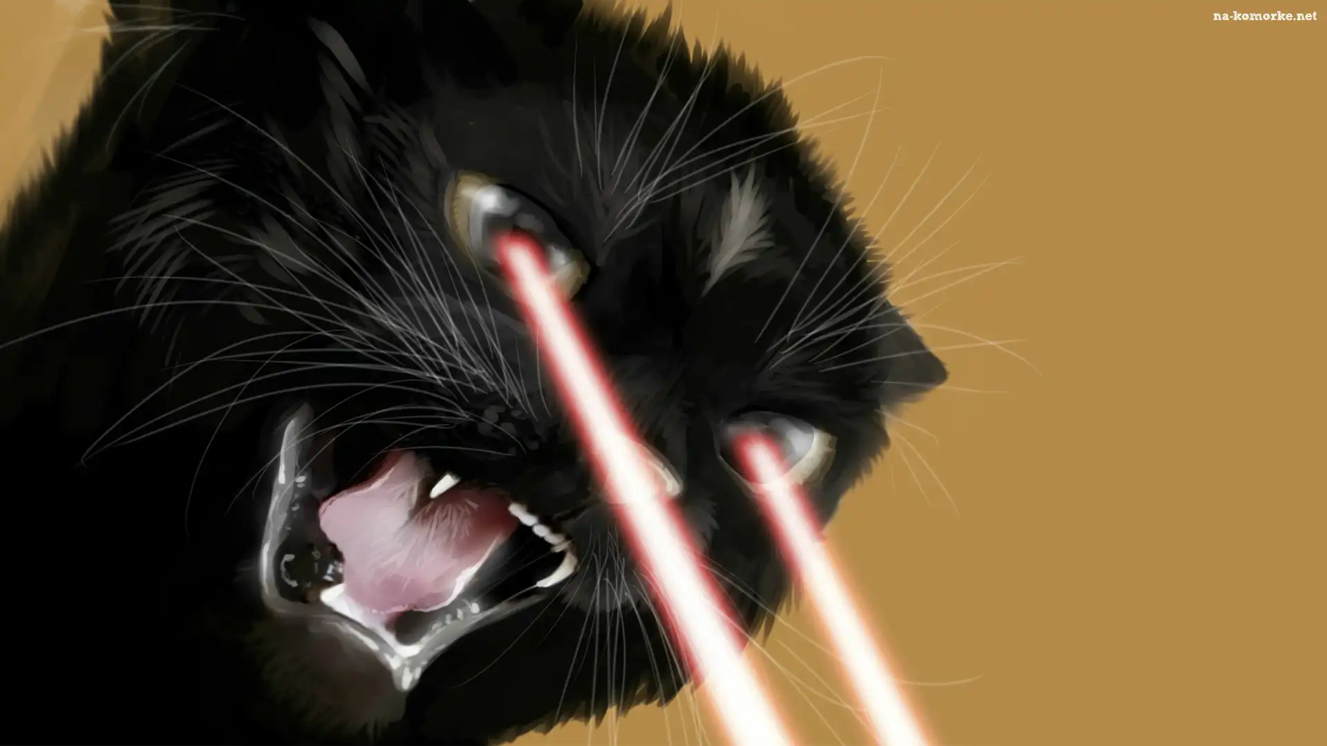 Art, Czarny, Kot, Ognisty, Wzrok na Komórkę