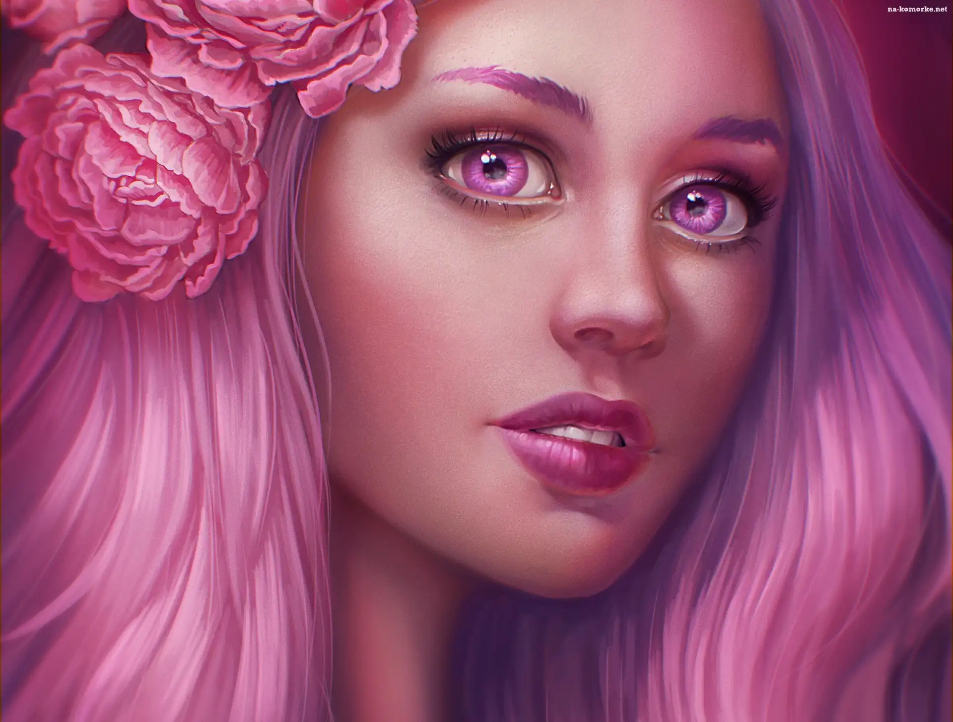 Art, Kobieta, Różowe, Włosy, Kwiaty na Komórkę