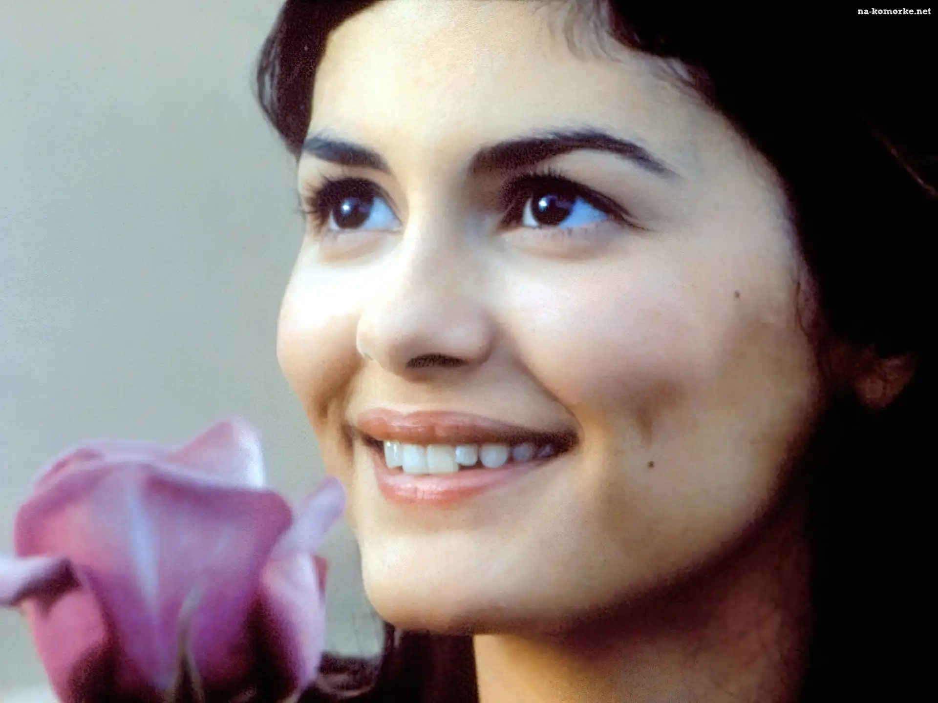 Audrey Tautou, kwiat, ciemne oczy na Komórkę