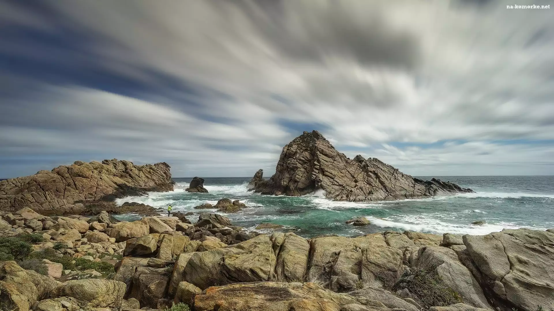 Chmury, Australia, Punkt widokowy Sugarloaf Rock, Morze, Skały na Komórkę