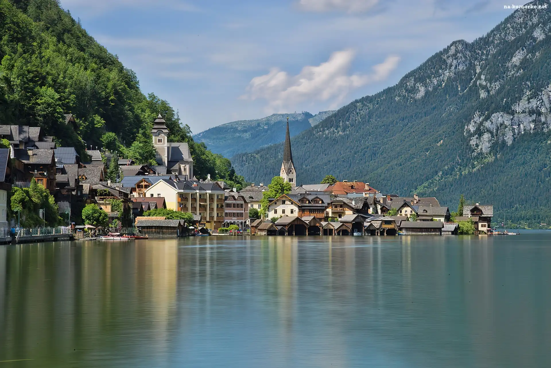 Austria, Jezioro, Góry, Zabudowanie, Hallstatt na Komórkę