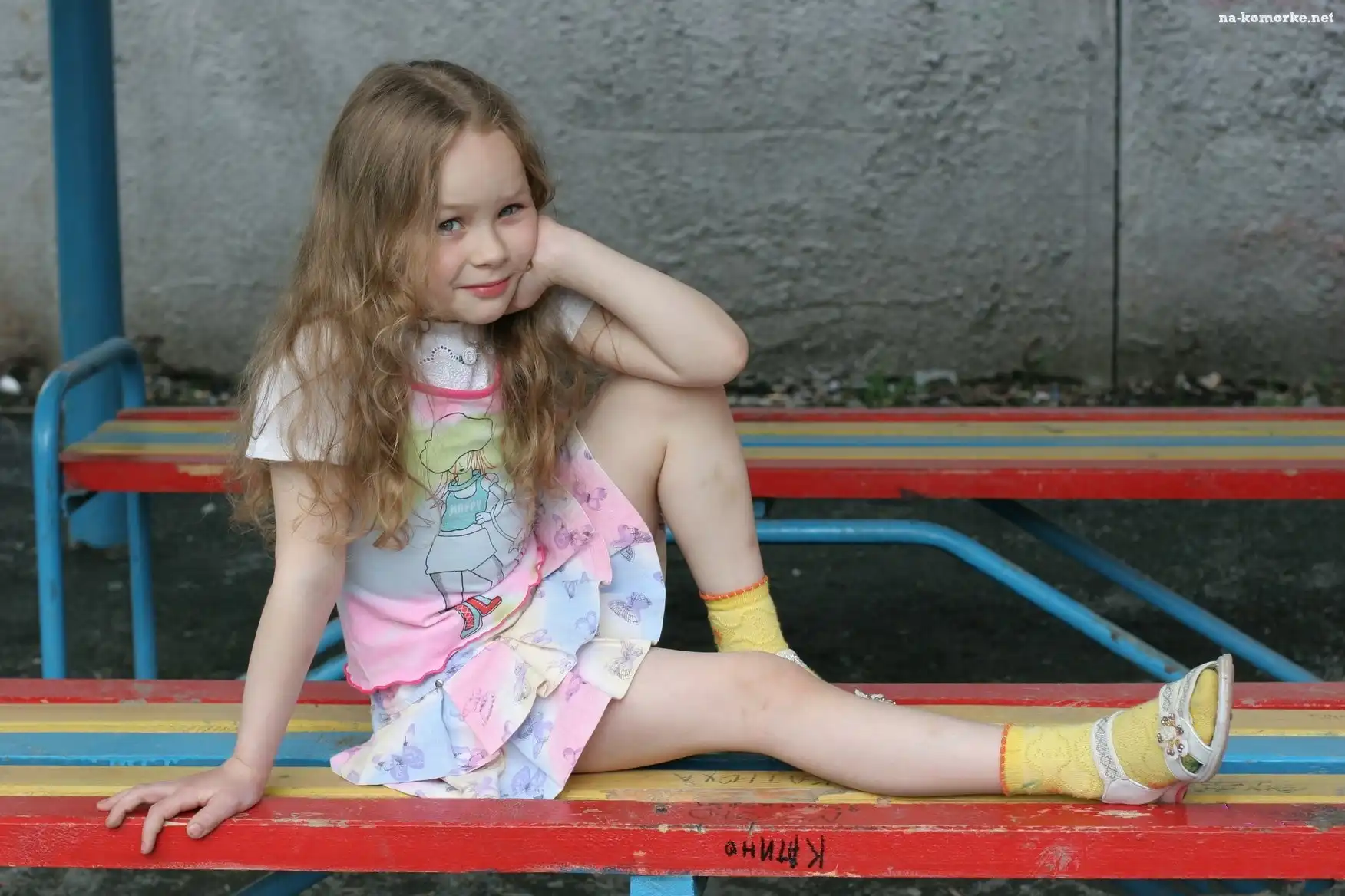 Dziewczynka, Ławka, Uśmiech na Komórkę