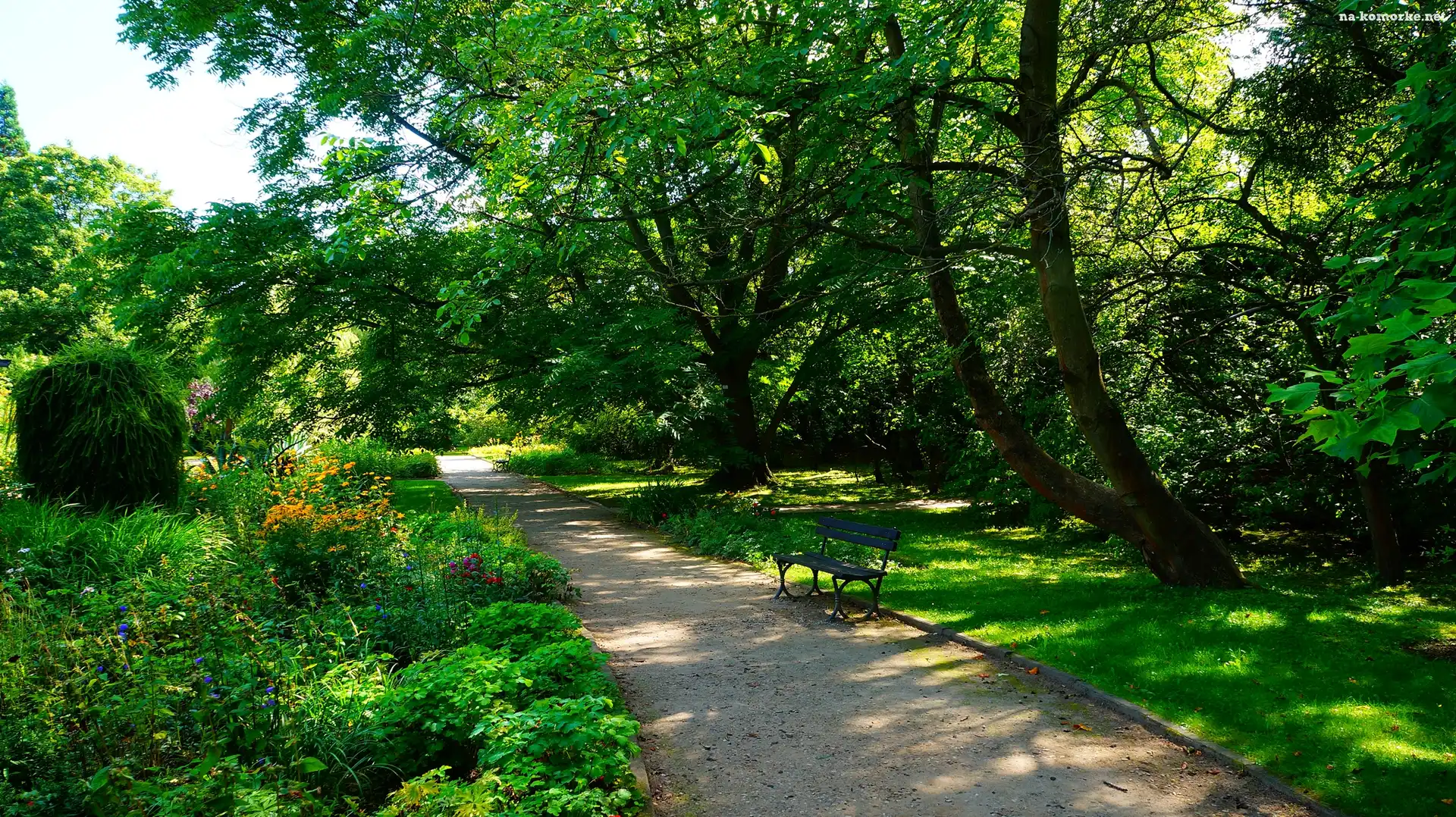 Alejka, Gdańsk, Polska, Roślinność, Park Oliwski im. Adama Mickiewicza, Ławka na Komórkę