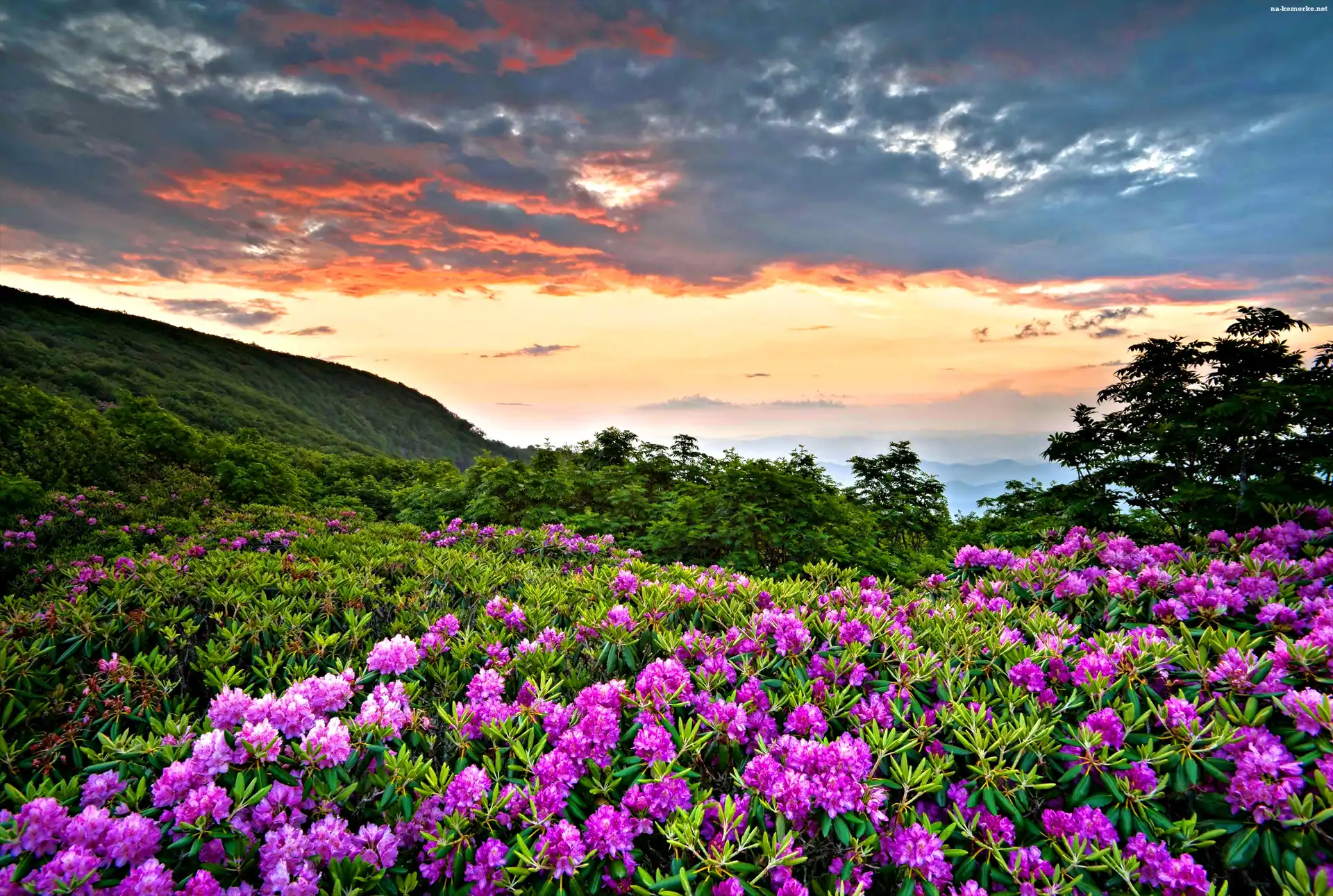 Łąka, Chmury, Azalia, Góry na Komórkę
