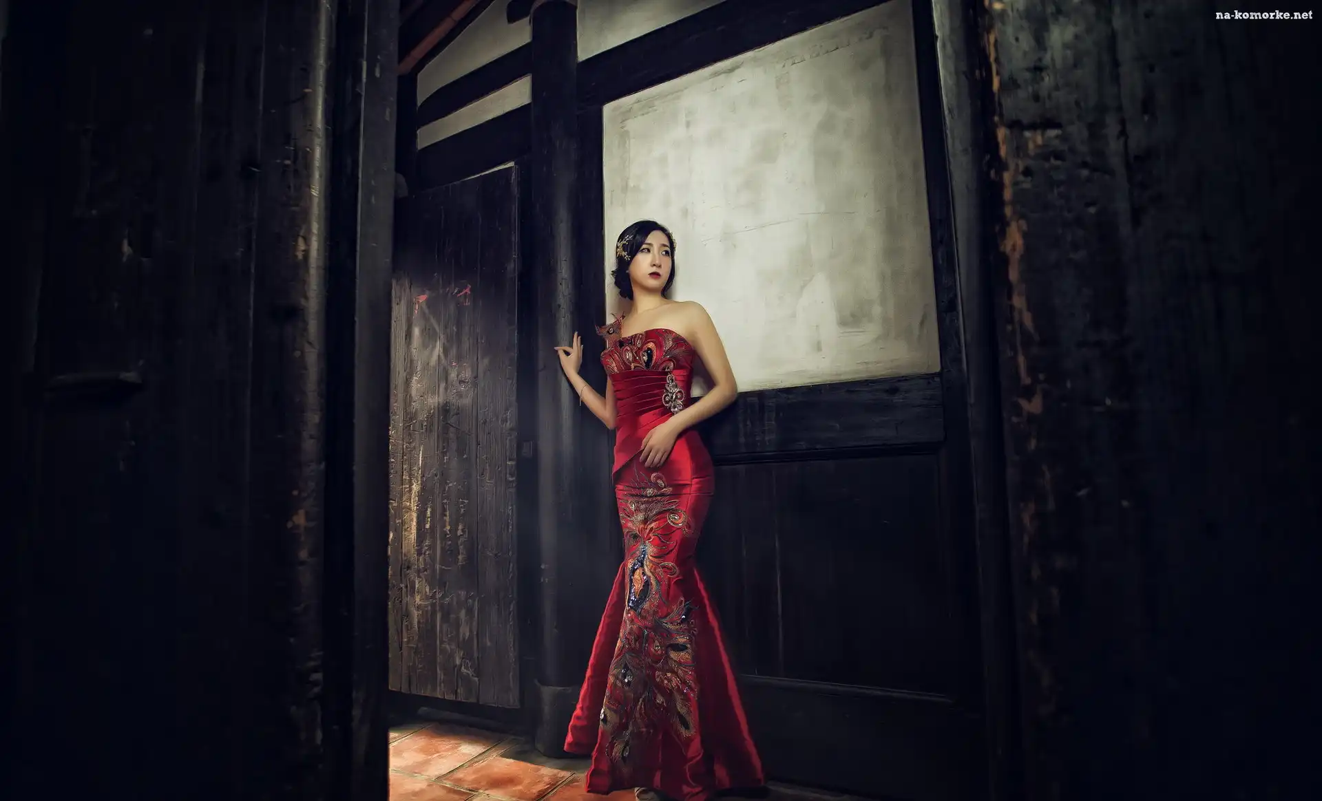 Azjatka, Sukienka, Czerwona, Wizytowa na Komórkę