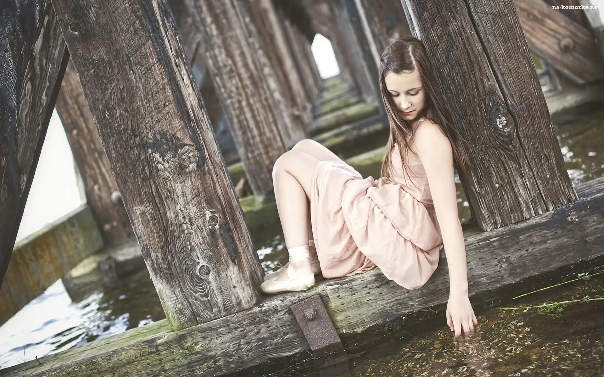 Baletnica, Dziewczyna, Młoda, Molo, Brunetka, Woda na Komórkę
