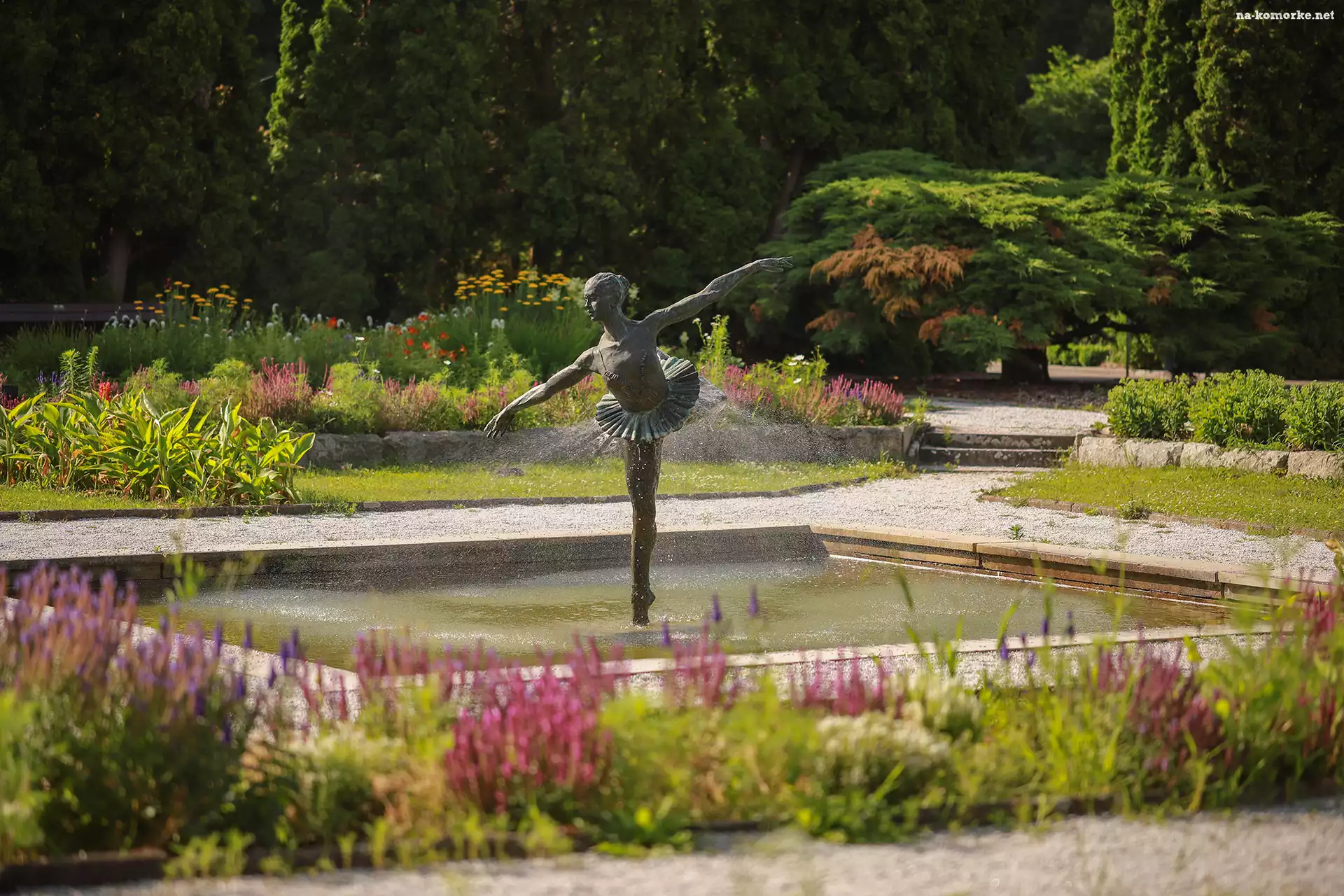 Kwiaty, Baletnica, Fontanna, Polska, Ogród Botaniczny, Poznań na Komórkę