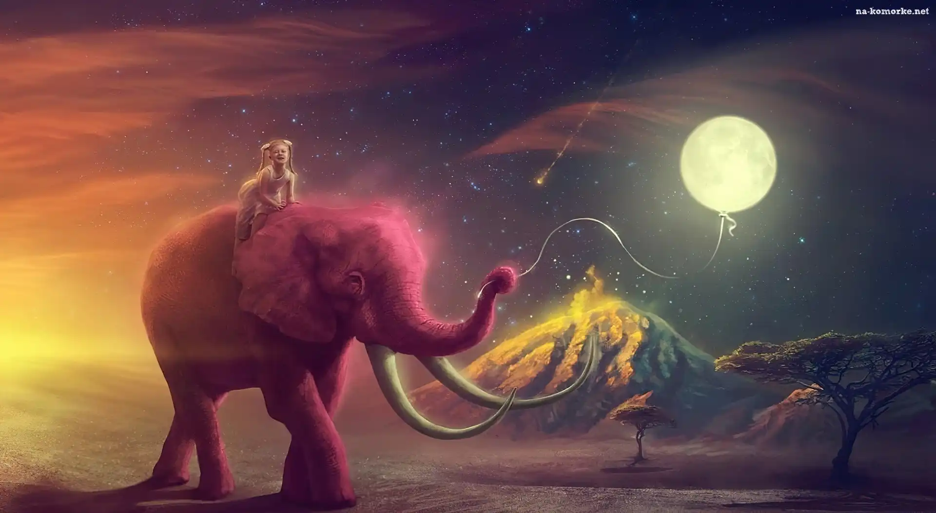 Balon, Dziewczynka, Różowy, Słoń, Księżyc na Komórkę