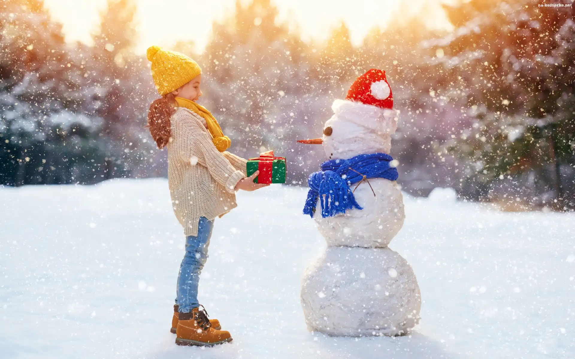 Dziewczynka, Bałwan, Prezent na Komórkę