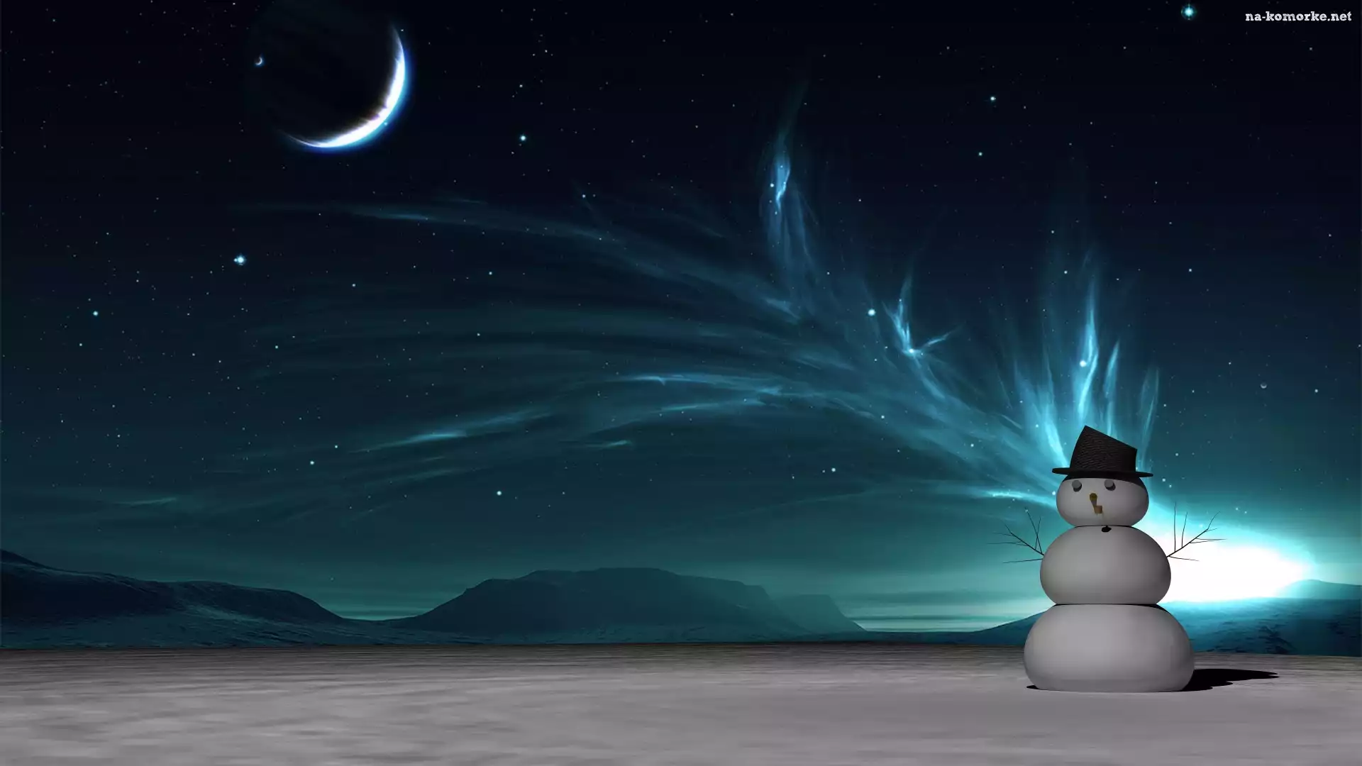 Bałwanek, Księżyc, Zorza Polarna, Zima na Komórkę