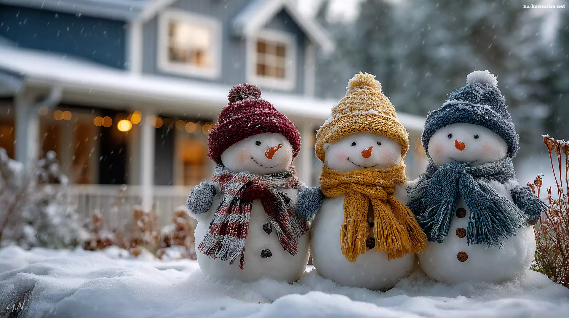 Szaliki, Zima, Trzy, Grafika AI, Kolorowe, Czapki, Bałwanki na Komórkę