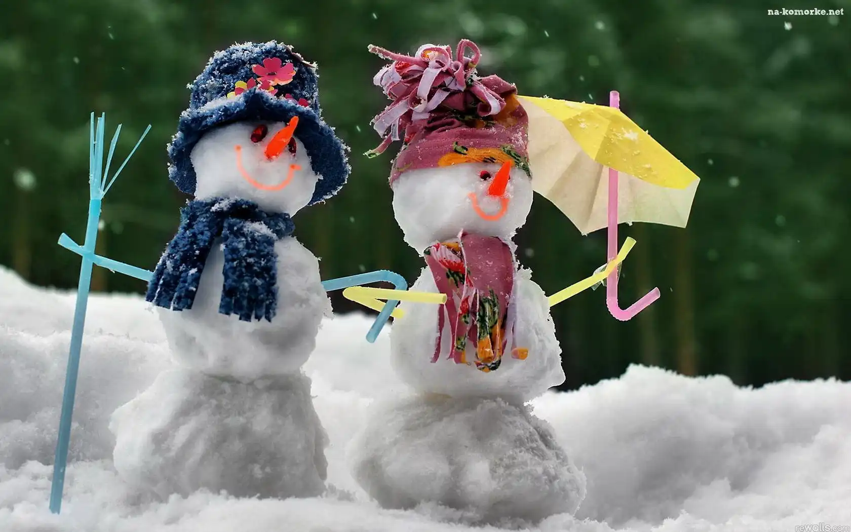 Parasolka, Zima, Śniegowe, Bałwanki na Komórkę