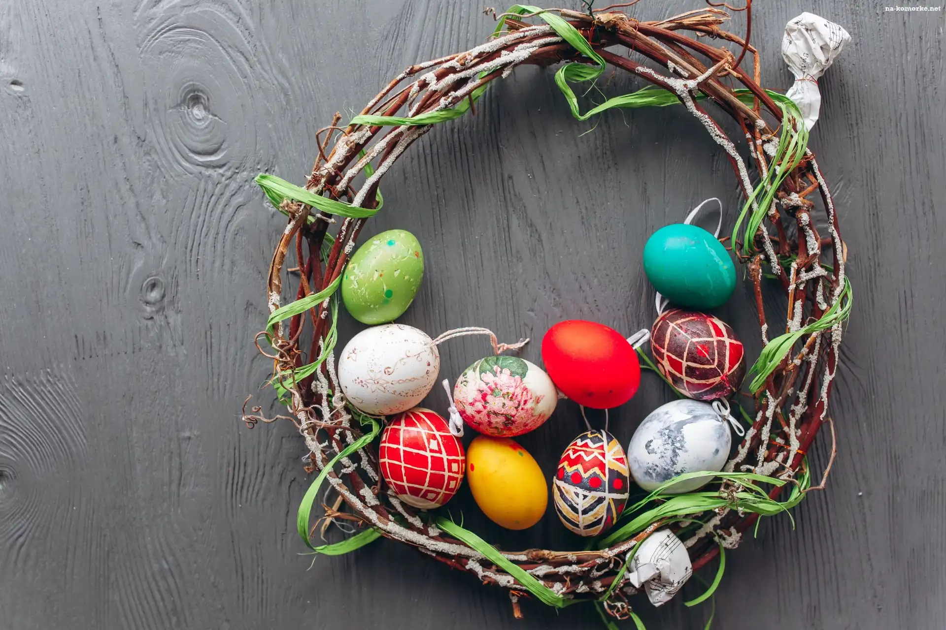 Barwne, Wieniec, Wiklinowy, Wielkanoc, Kolorowe, Pisanki na Komórkę