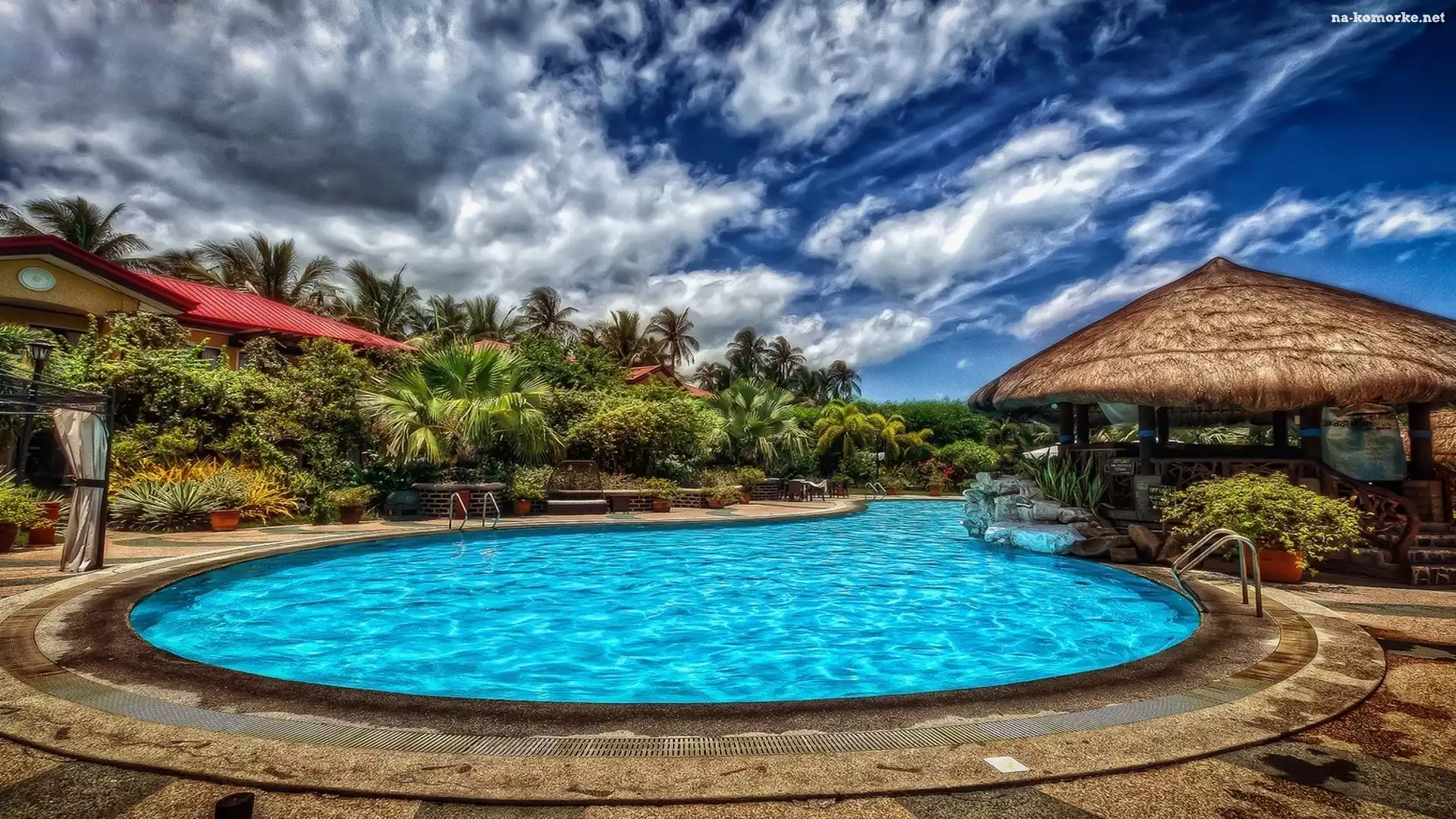 Basen, Chmury, Pawilon, Palmy na Komórkę