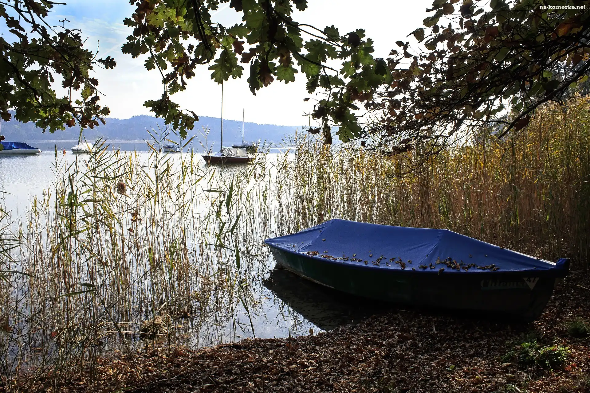 Jezioro, Bawaria, Trzcina, Niemcy, Simssee, Brzeg, Zakryte, Łódki na Komórkę