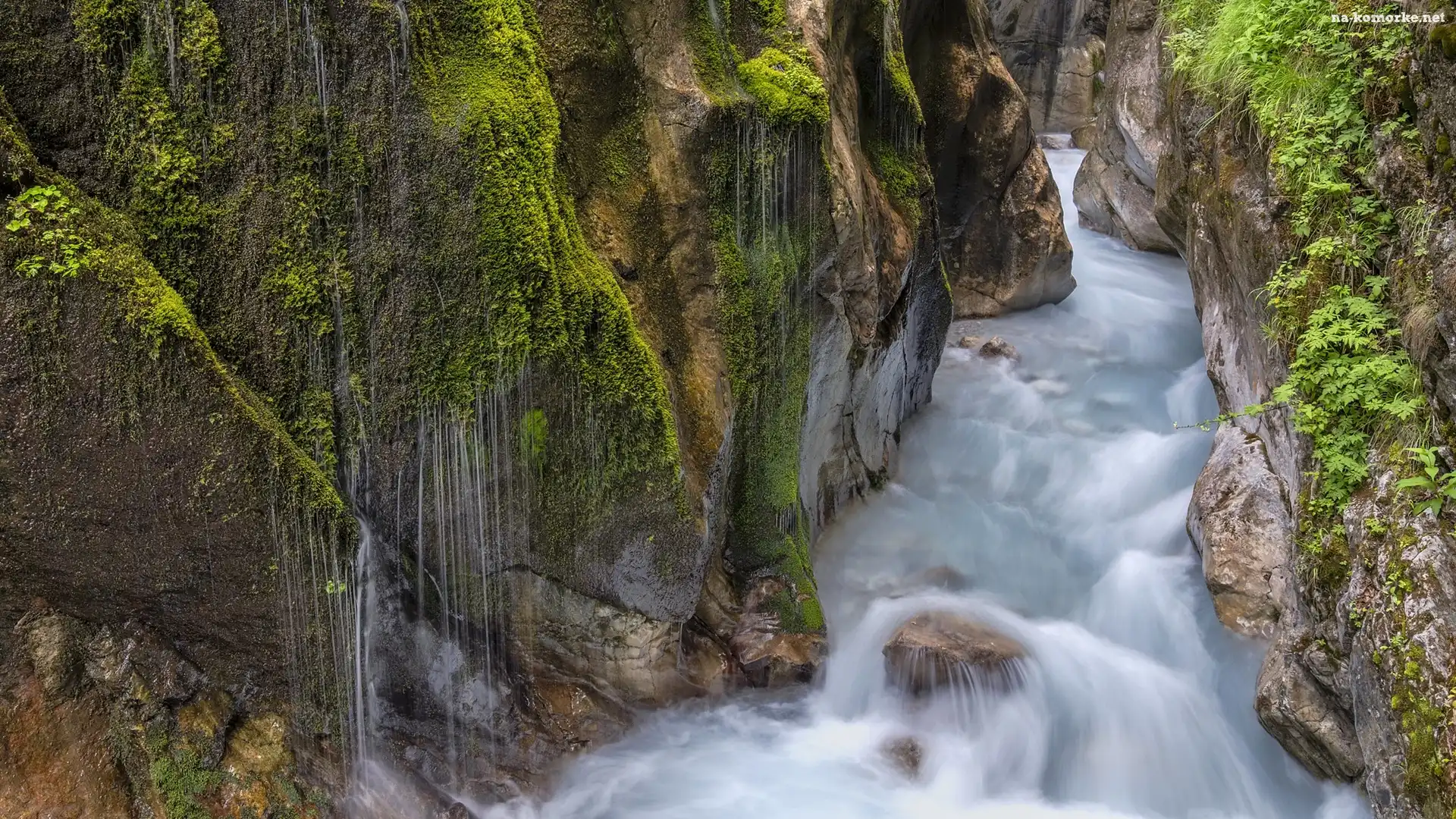 Rzeka, Mech, Wimbachklamm, Niemcy, Skały, Roślinność, Wąwóz, Bawaria na Komórkę