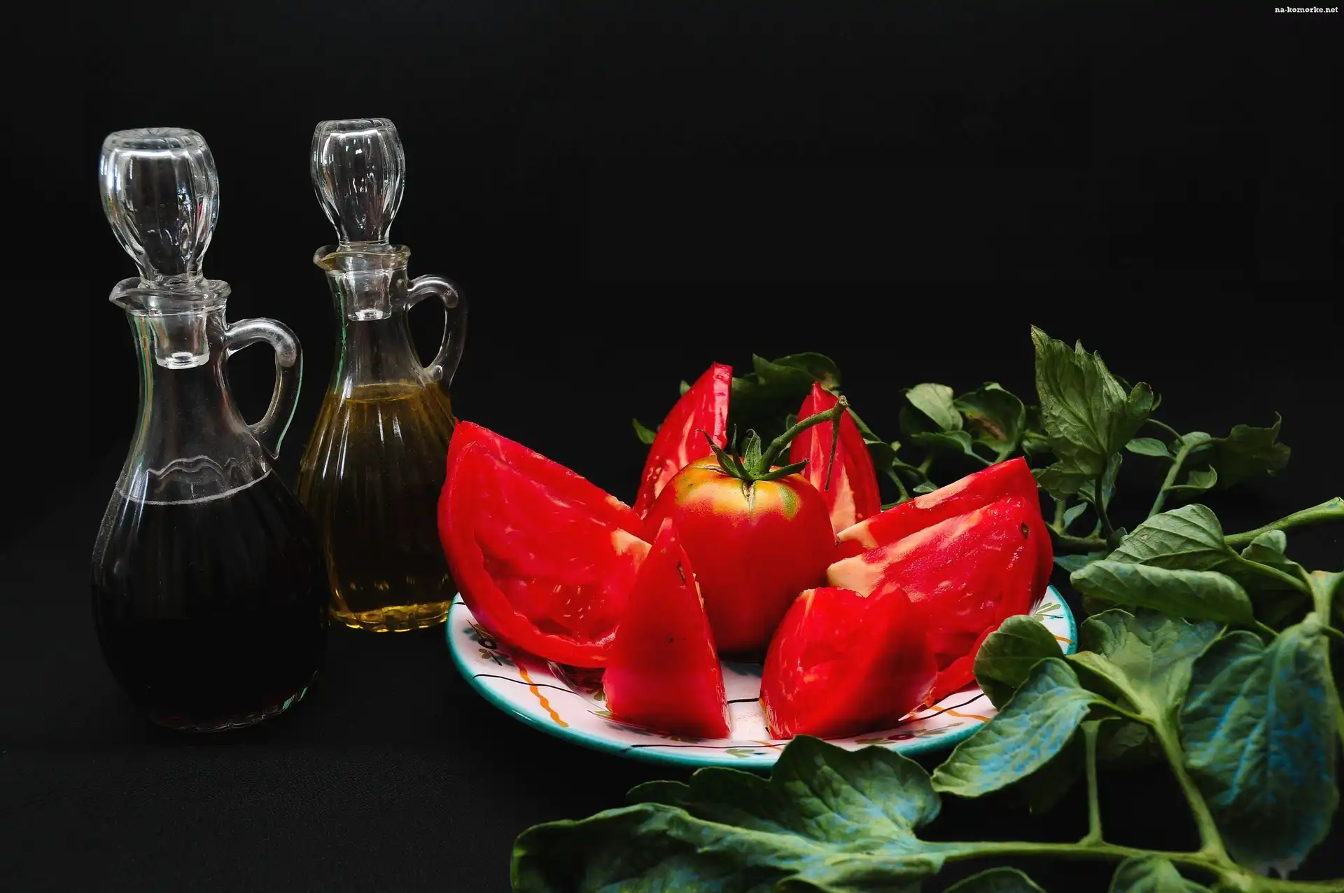 Bazylia, Pokrojone, Talerzyk, Ocet, Pomidorki, Oliwa na Komórkę
