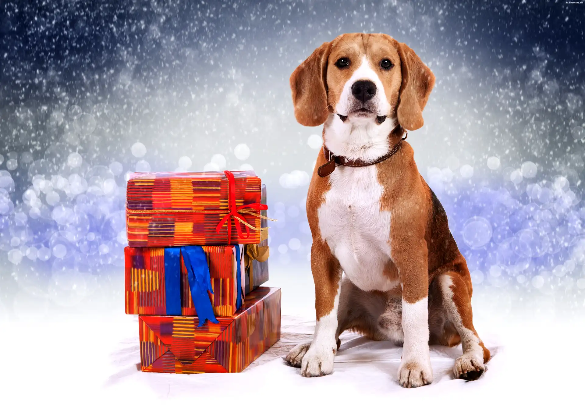 Beagle, Śnieg, Prezenty, Padający na Komórkę