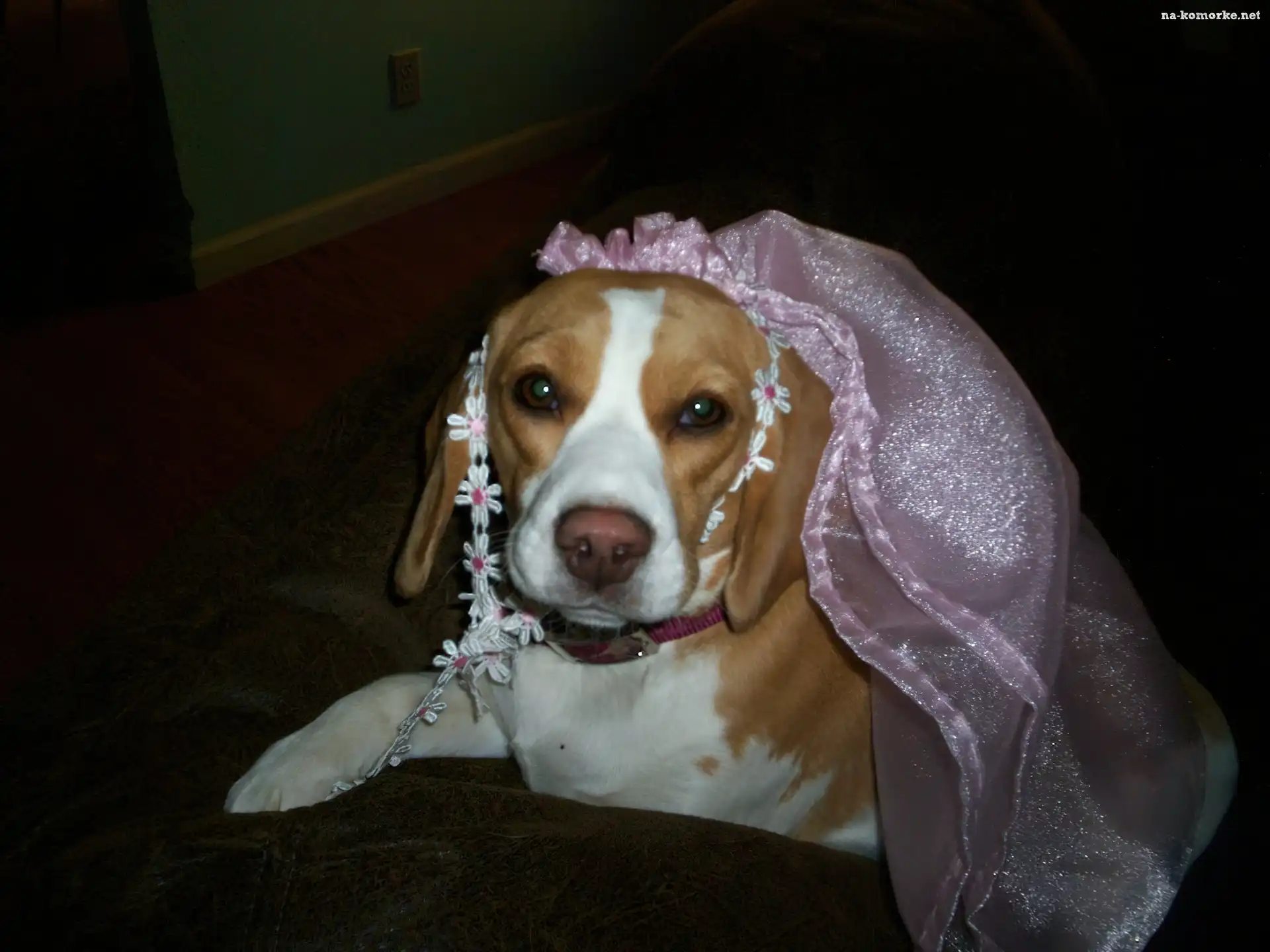 Beagle Harrier, żółte, kwiatki Harrier, Jesienne, Liście Beagle Harrier, różowy, welon