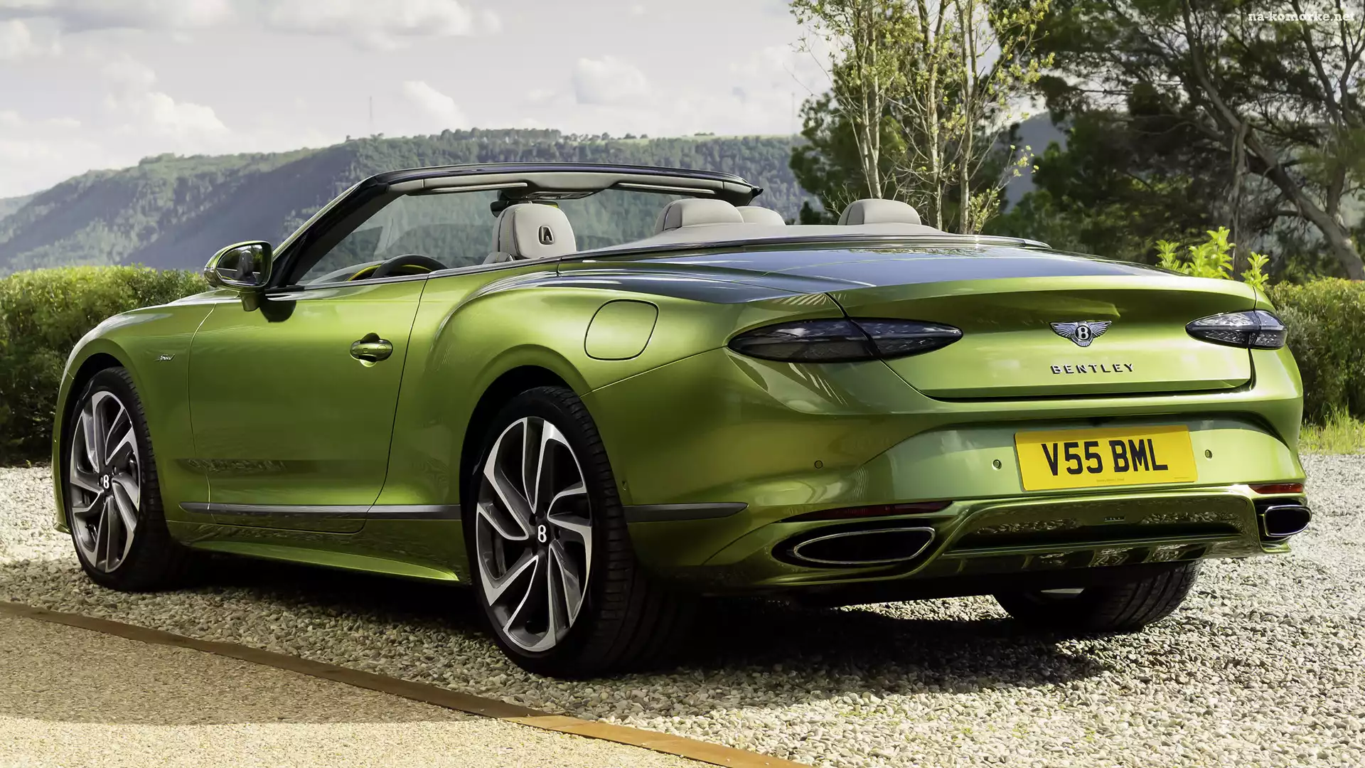 Zielony, GT, Kabriolet, Bentley Continental, Tył na Komórkę