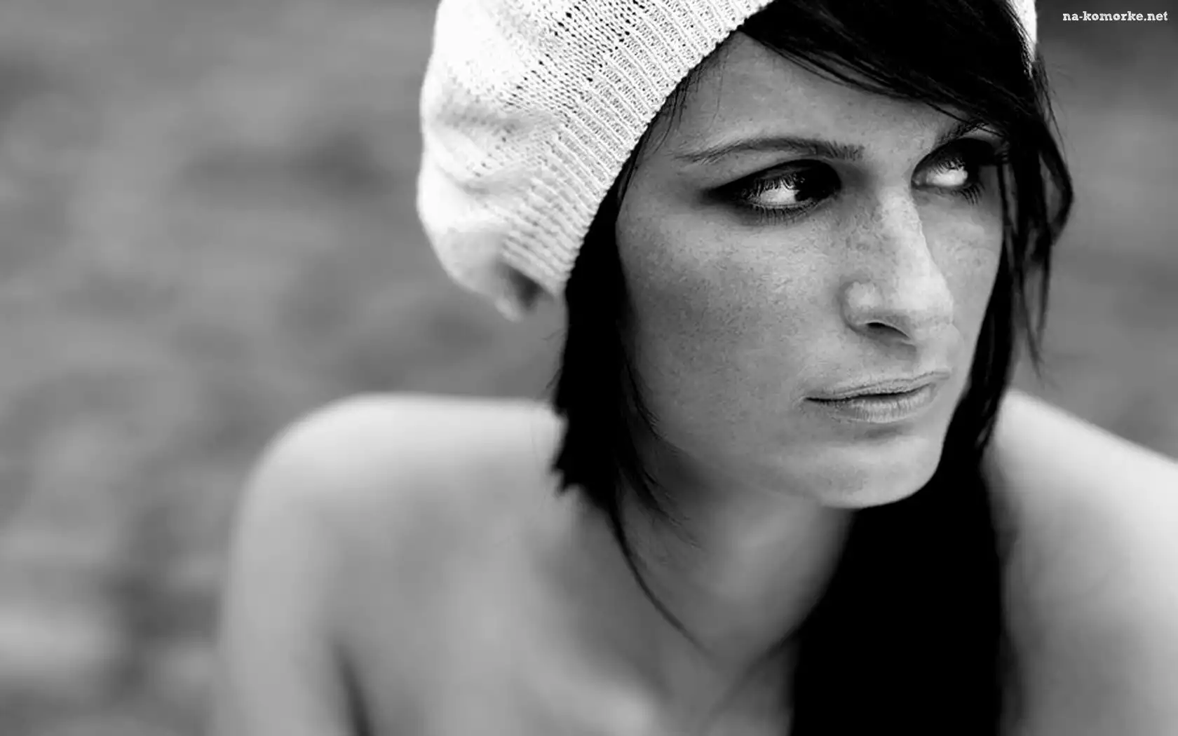 Kobieta, Czarno-Białe, Beret, Ramiona na Komórkę
