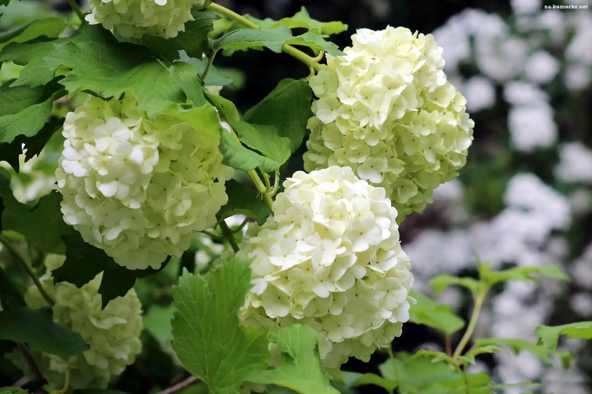 Biała, Listki, Hortensja, Zielone na Komórkę