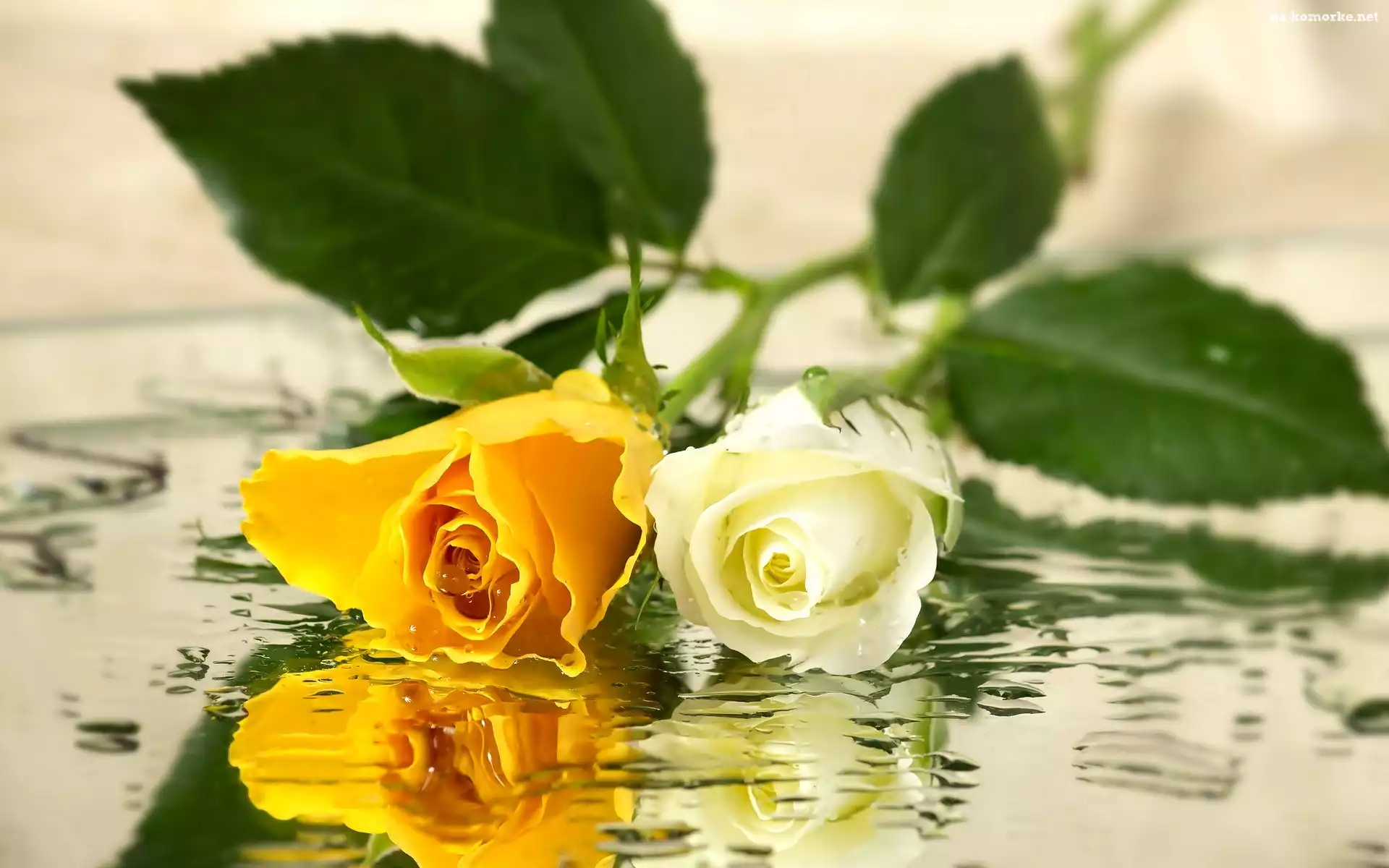 Biała, Woda, Żółta, Róża na Komórkę