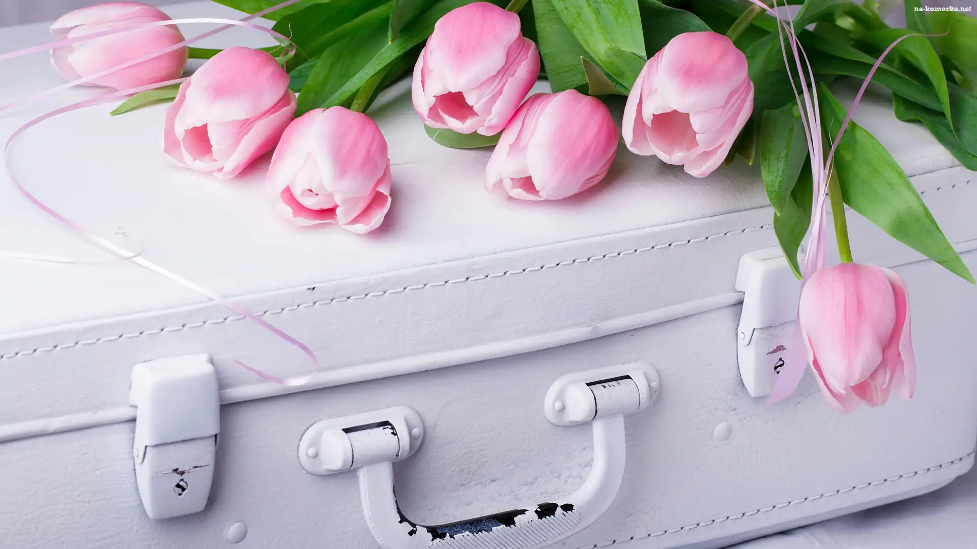 Biała, Tulipany, Walizka, Różowe na Komórkę
