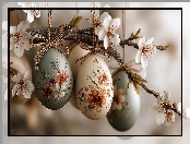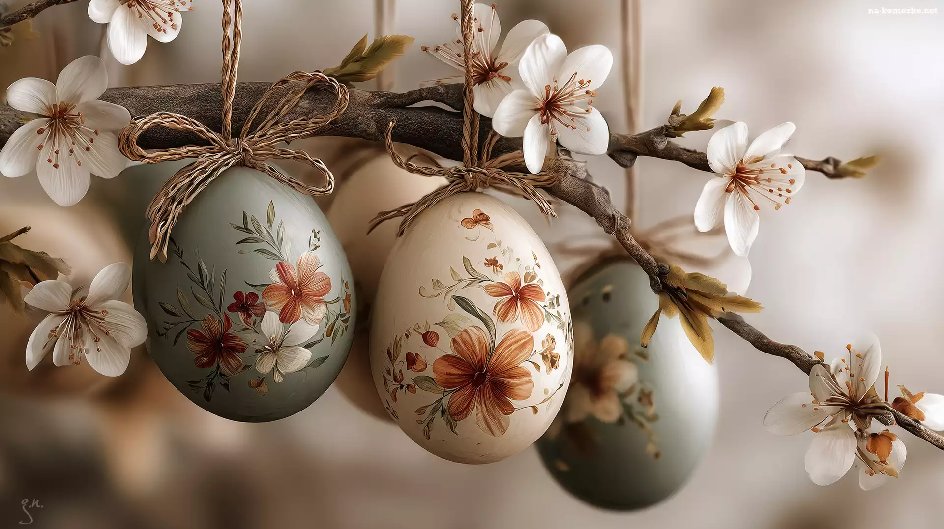 Białe, Wielkanoc, Styl, Pisanki, Rustykalny, Grafika AI, Kwiaty, Gałązka na Komórkę