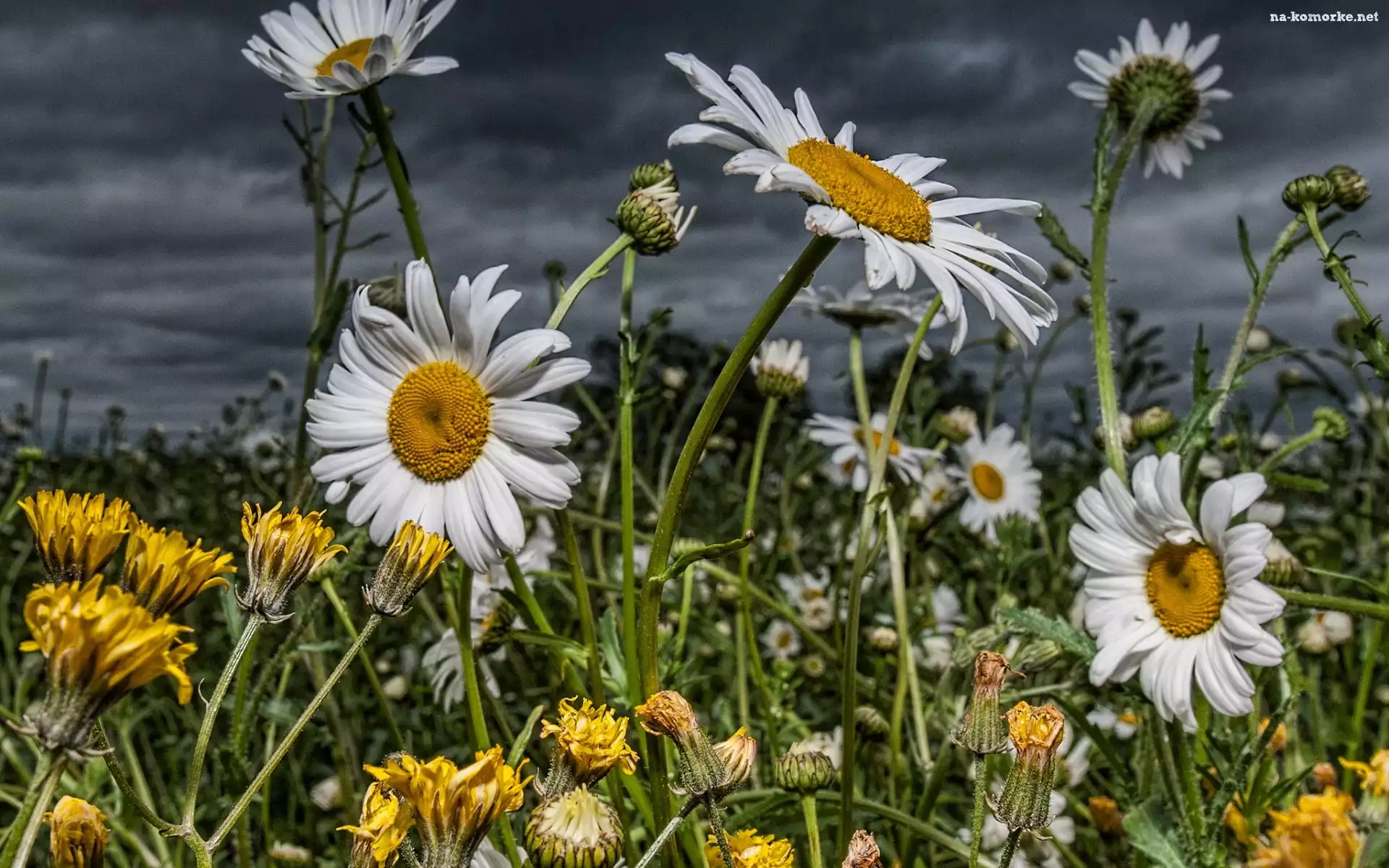 Białe, Łąka, Kwiatki, Chmury na Komórkę