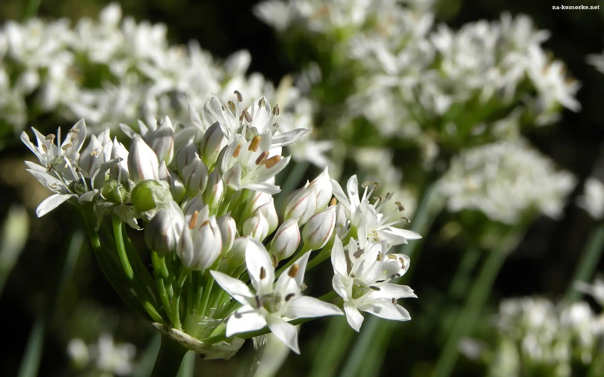 Białe, Makro, Kwiatki, Cebuli na Komórkę