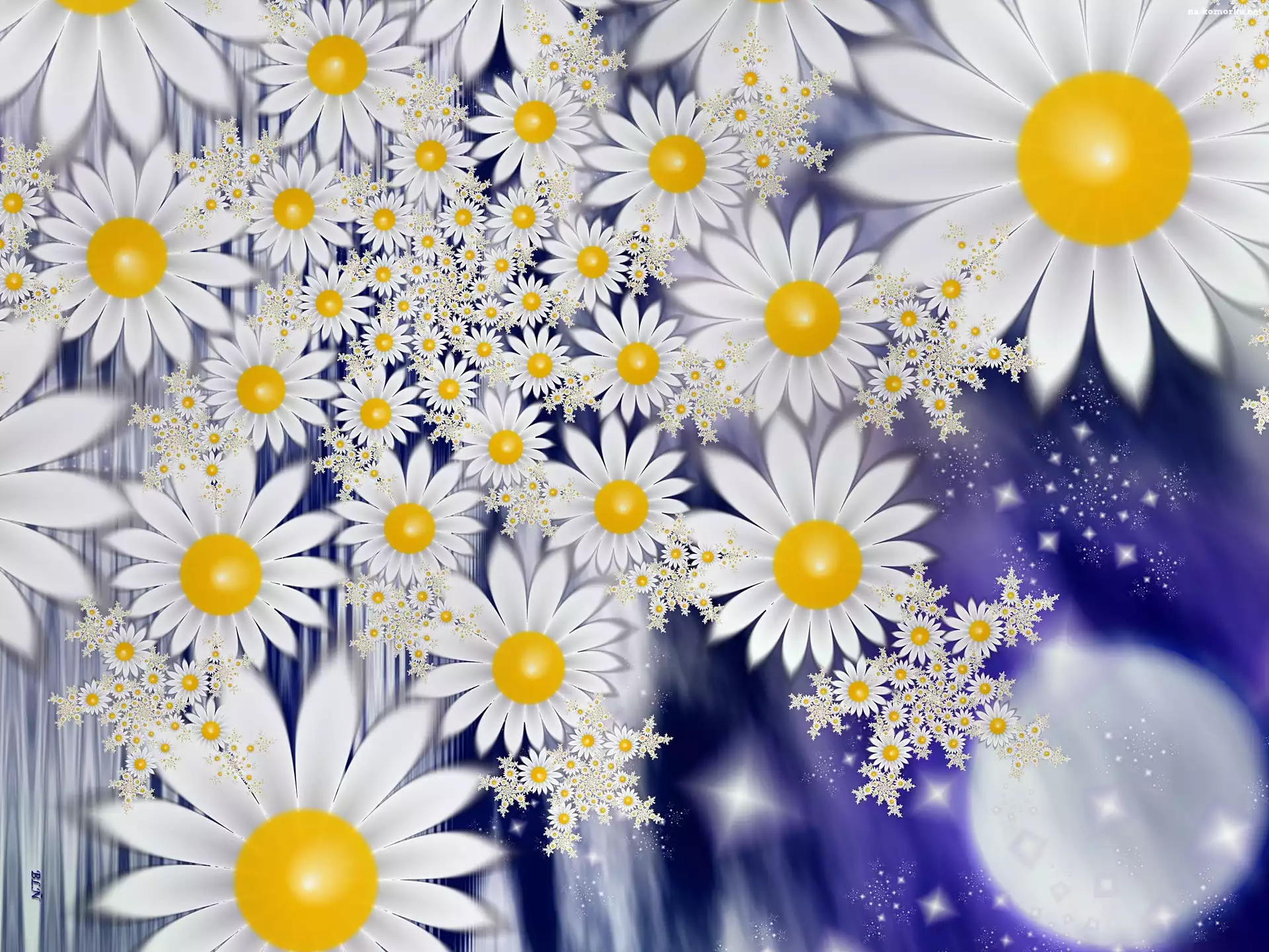 Białe, 3D, Kwiaty, Grafika na Komórkę