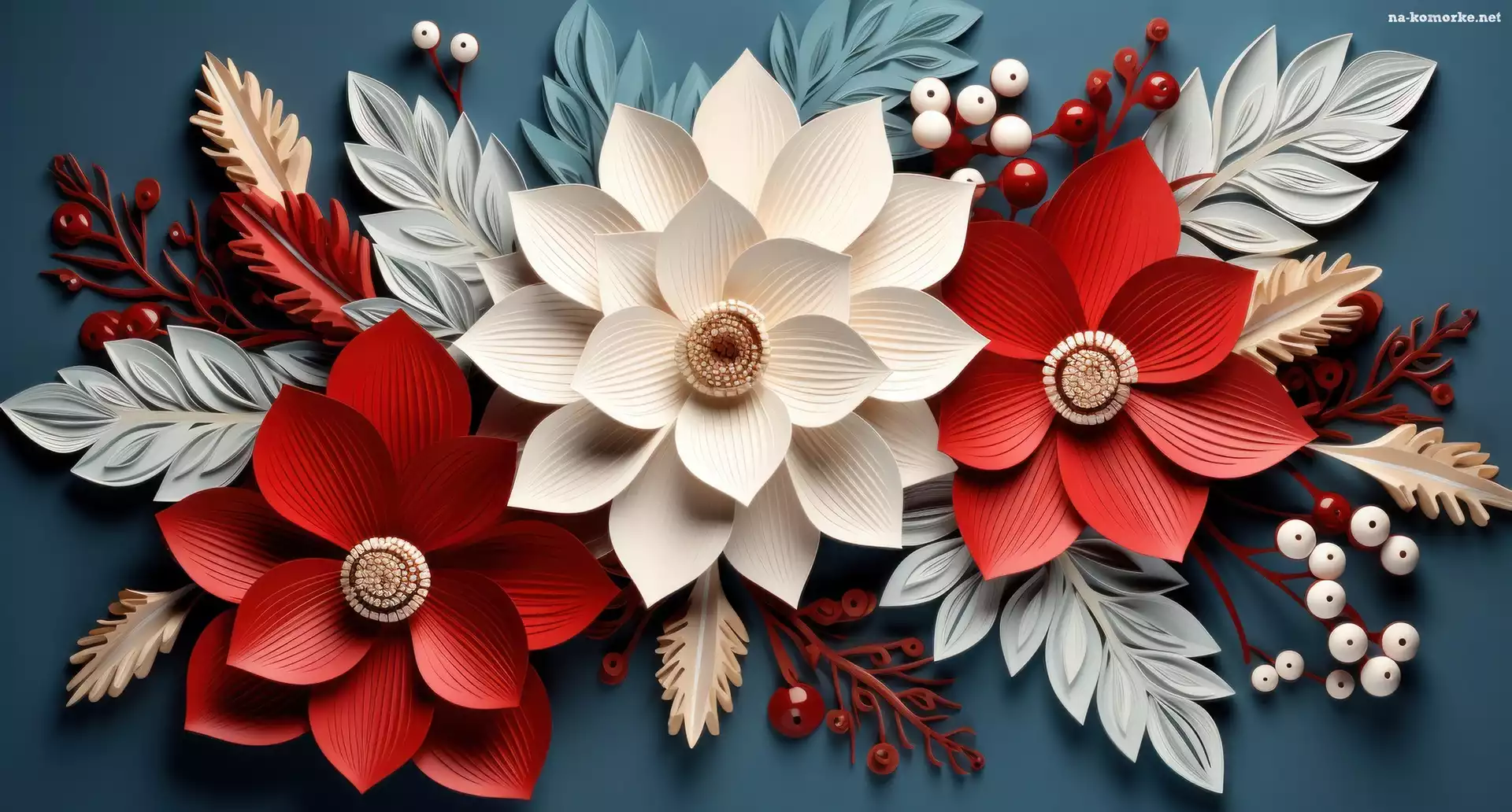 Papierowe, Białe, Kwiaty, Czerwone, Grafika na Komórkę