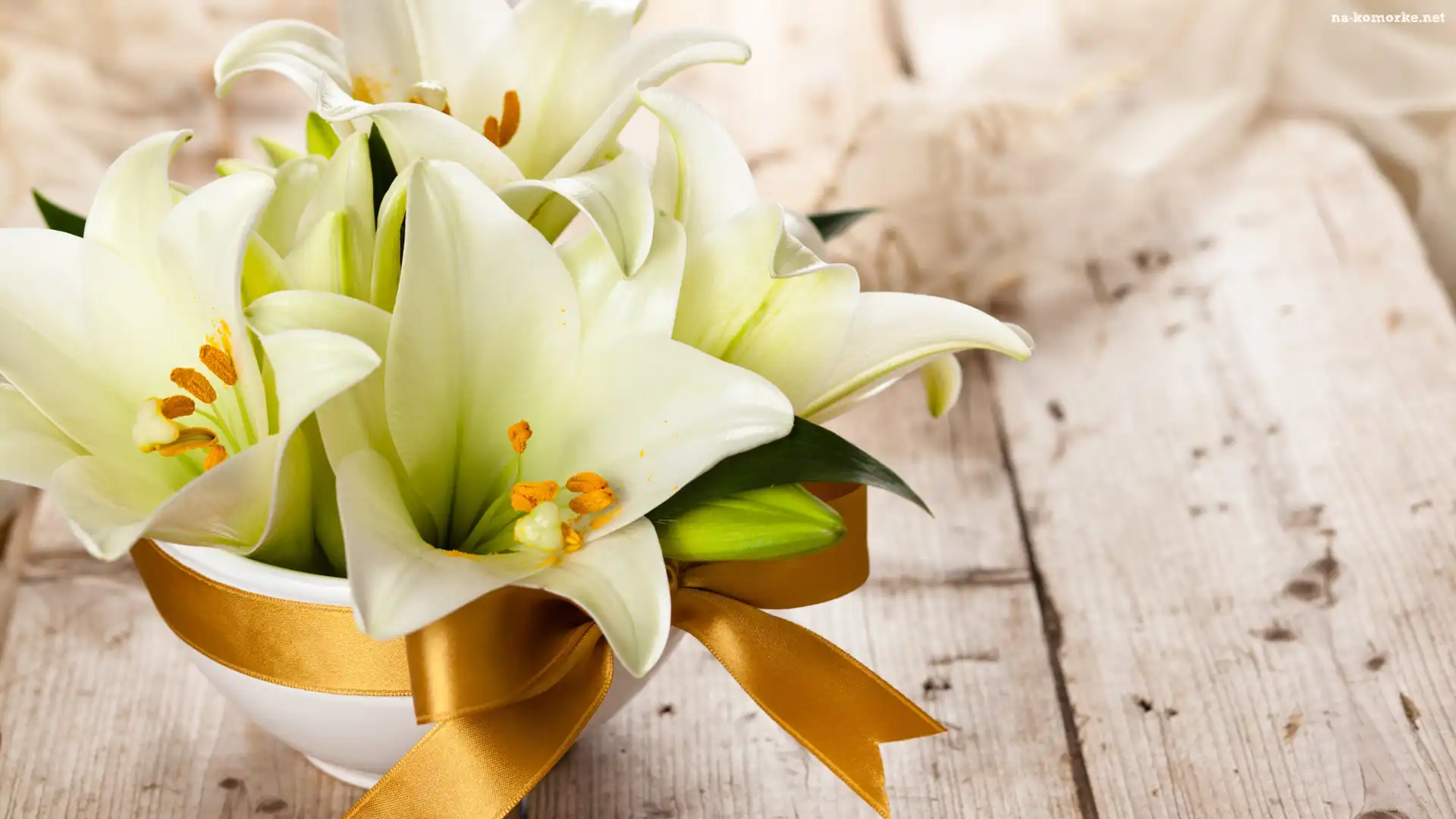 Białe, Wstążka, Lilie, Wazonik na Komórkę