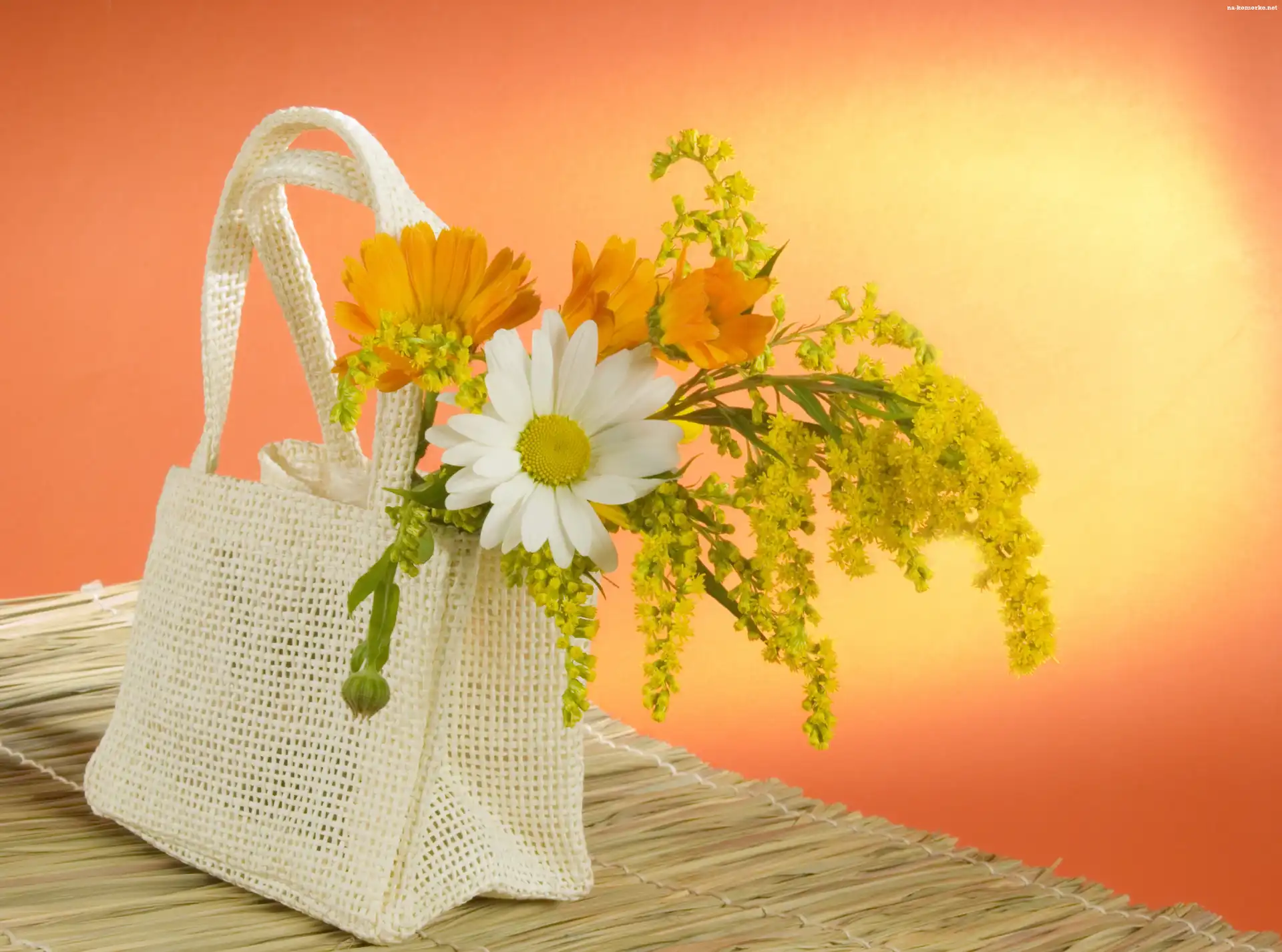 Białe, Torba, Żółte, Kwiatki na Komórkę