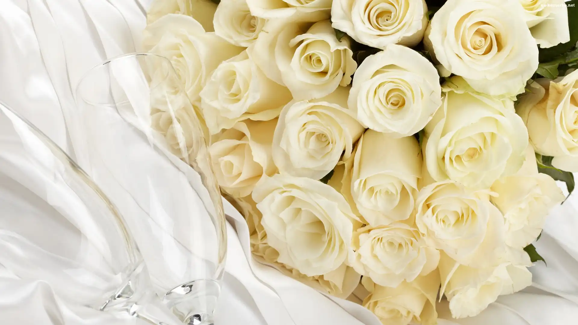 Białe, Kieliszki, Róże, Tkanina na Komórkę