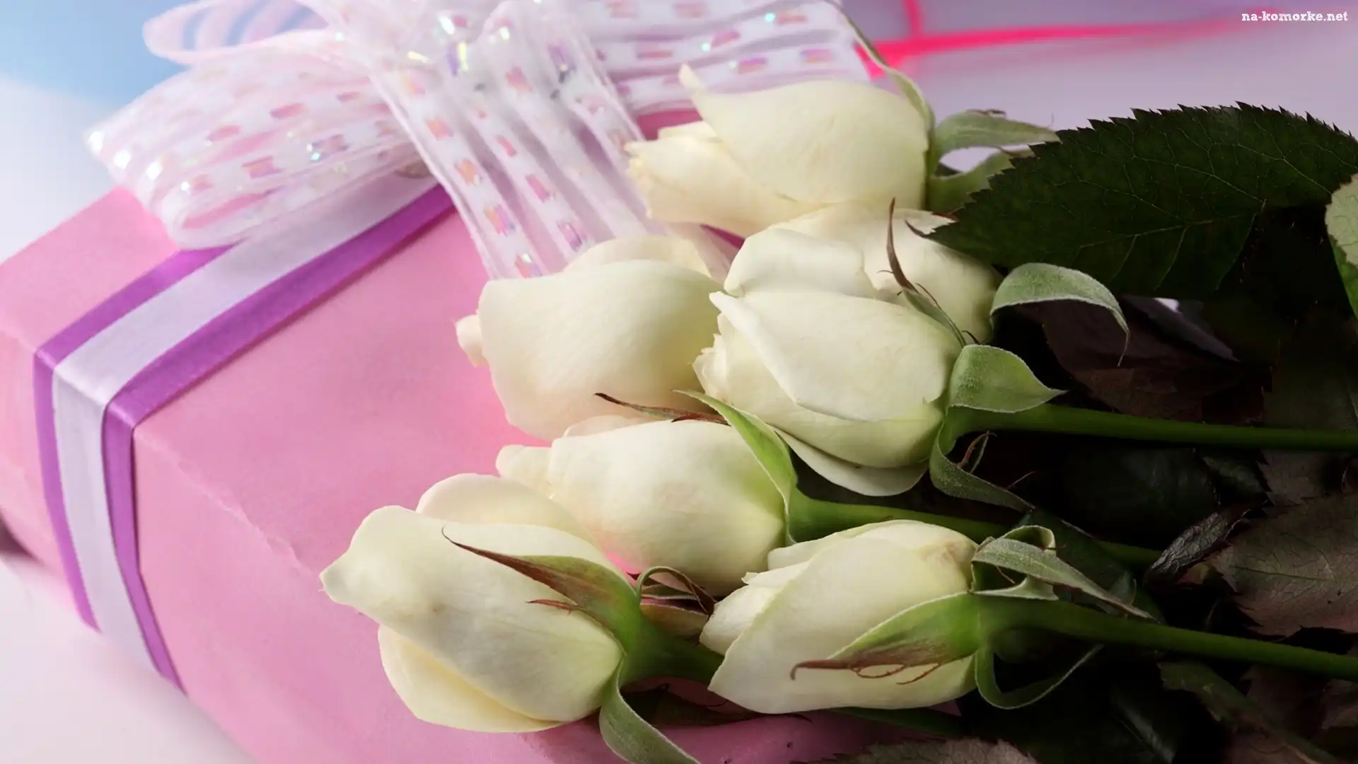 Białe, Wstążki, Róże, Pudełko na Komórkę