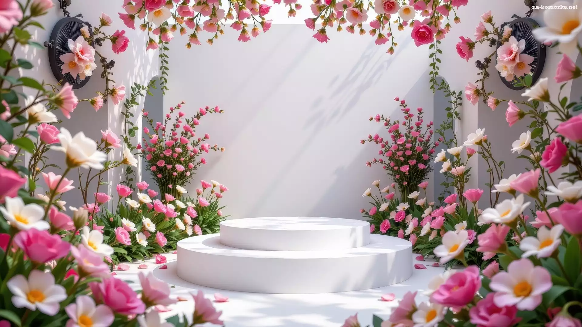 Różowe, Kwiaty, Podium, Białe na Komórkę