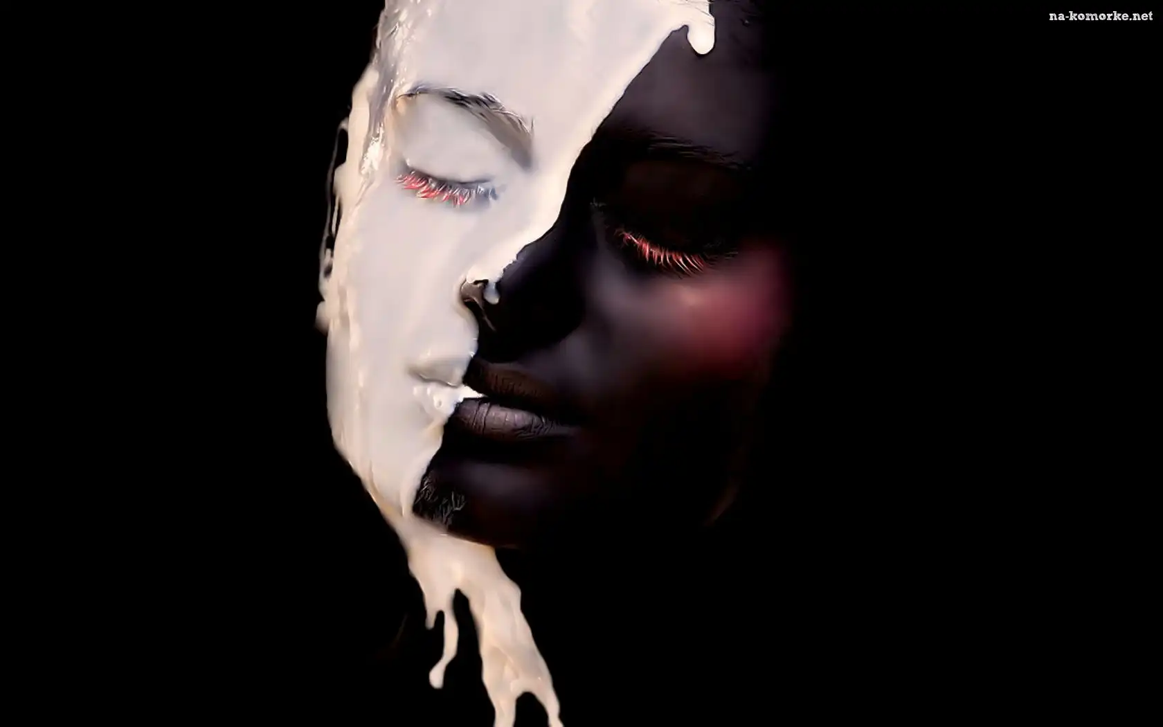 Biało, Kobiety, Czarna, Twarz na Komórkę