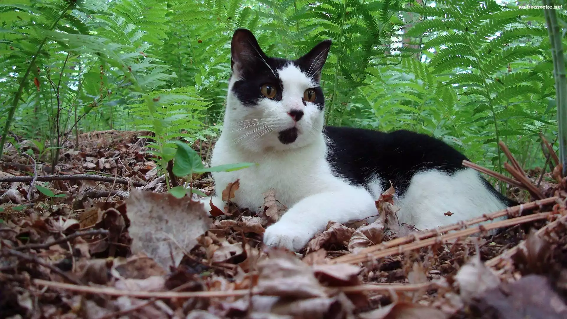 Biało, Paproć, Czarny, Kotek na Komórkę